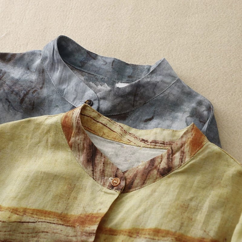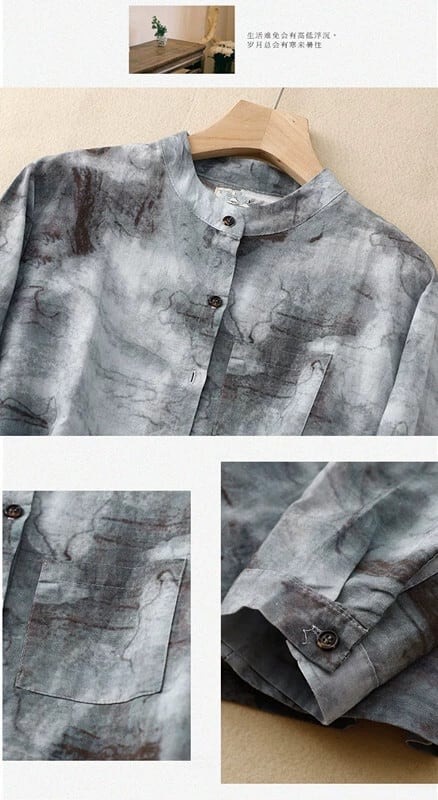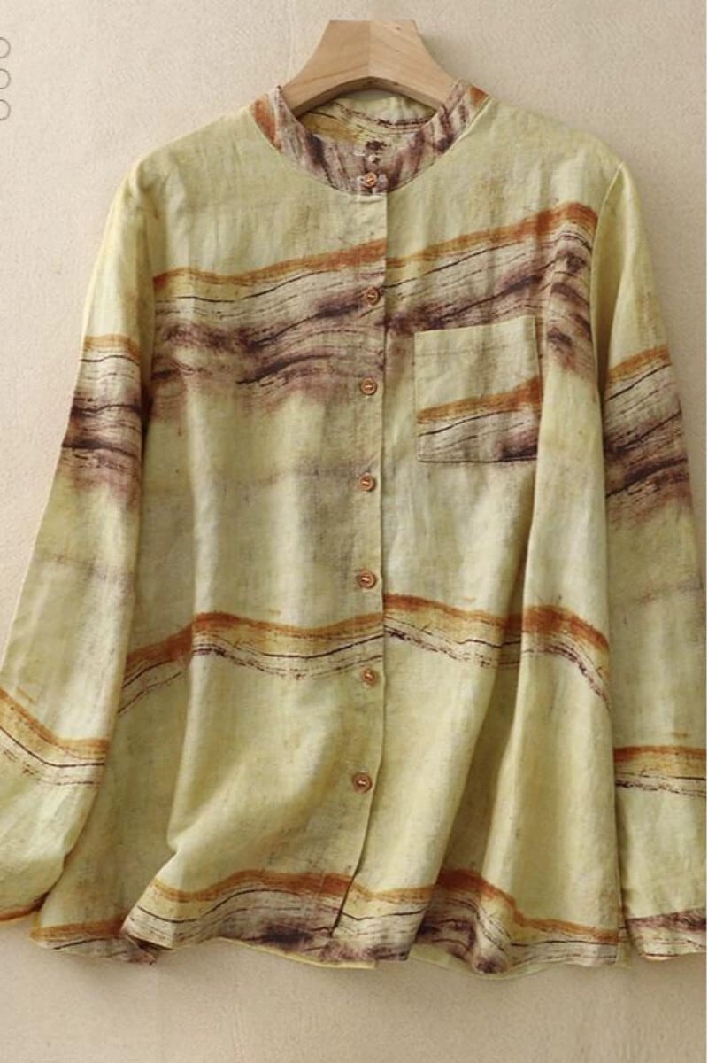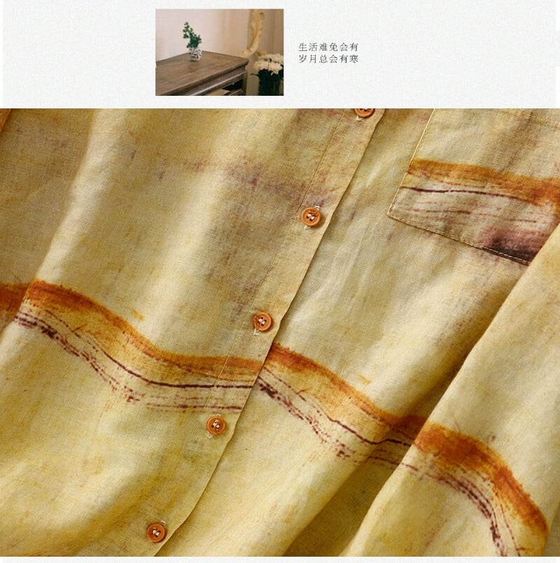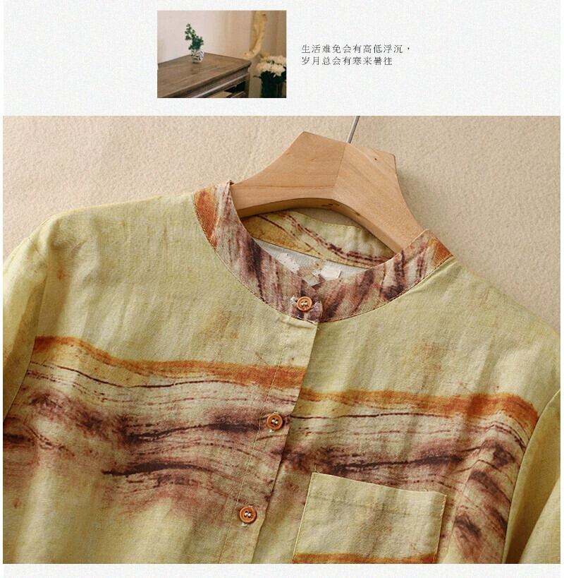 ファーストラインブランド eign trade 最終在庫リネンプリント長袖シャツレディース秋レトロルーズラミーカーディガントップ ロング オータム 秋物 sine93730218912