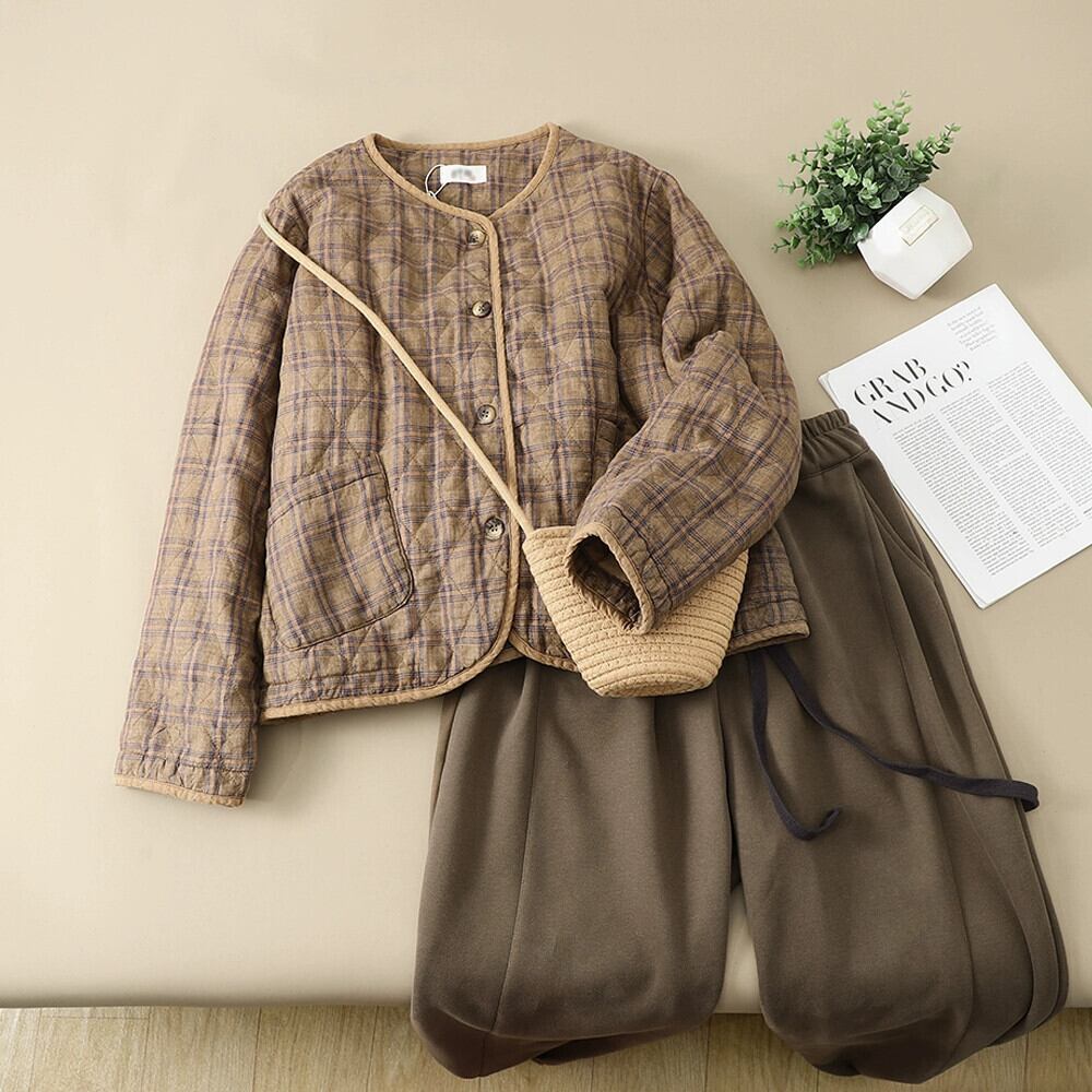 ビッグブランドテールグッズのクリアランスカウンター撤去レトロチェック柄ベースボールジャケットレディース冬キルティング厚く暖かい綿コート コットン ウィンター 冬物 sine90309258097