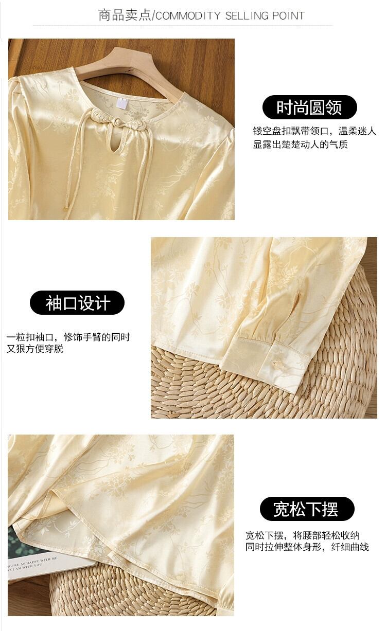 ビッグブランドテールグッズのクリアランスカウンター撤去中国風高級サテンシャツレディースレトロバックルプルオーバートップ sine17891627376