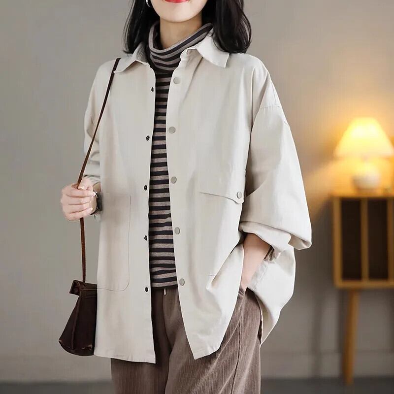 eign trade ese 有名なカウンター商品バージョンのワークシャツジャケット女性の緩いカジュアルな気質のラペルトップ秋 オータム 秋物 sine67918464774