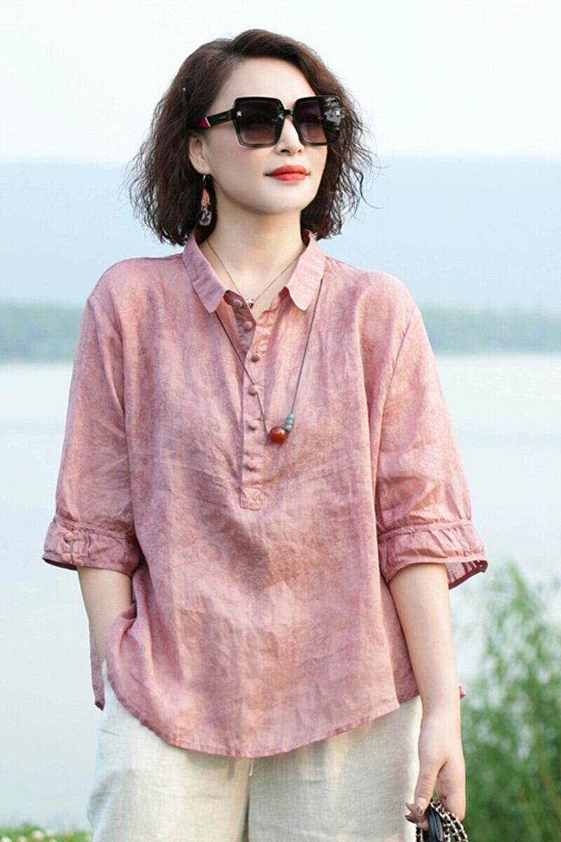 クリアランス漏れ〜カウンタービッグブランド牛レトロラミー半袖シャツレディースルーズカジュアルリネンシャツトップ sine87039254625