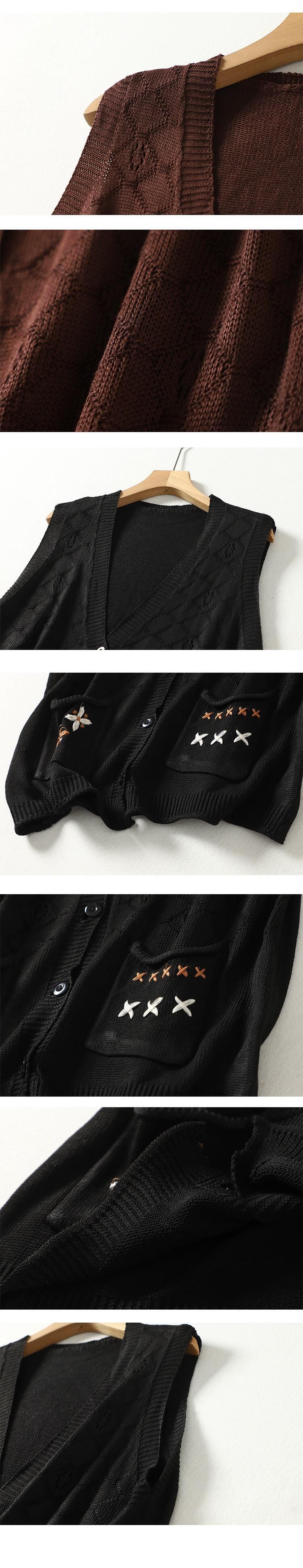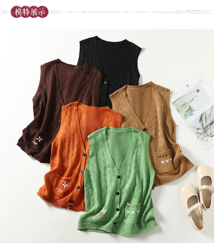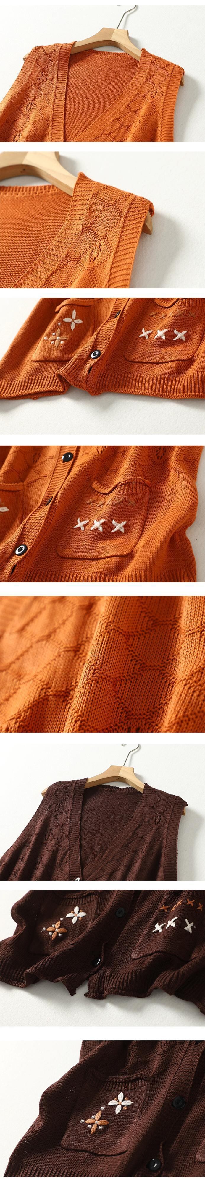ディスカウントストアショッピングモールレトロ刺繍ニットカーディガンベスト女性 V ネックベストセーター レッド Vネック sine14962725258