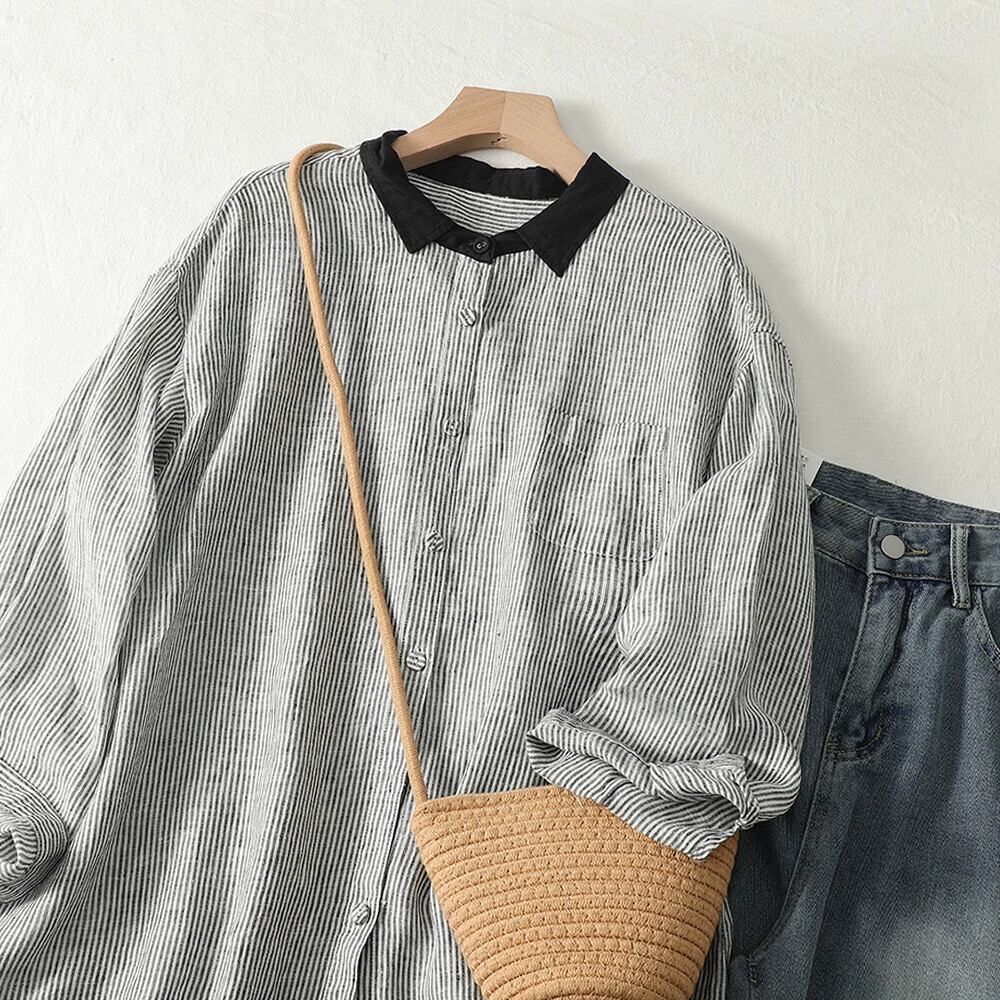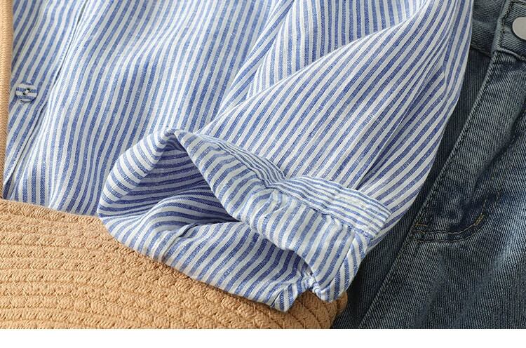 モールビッグネーム撤退最終在庫レトロコットンとリネンストライプシャツ女性のルーズカジュアルリネンドールカラートップ sine72687929543