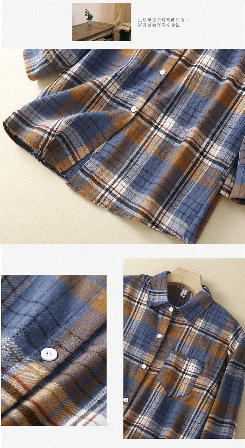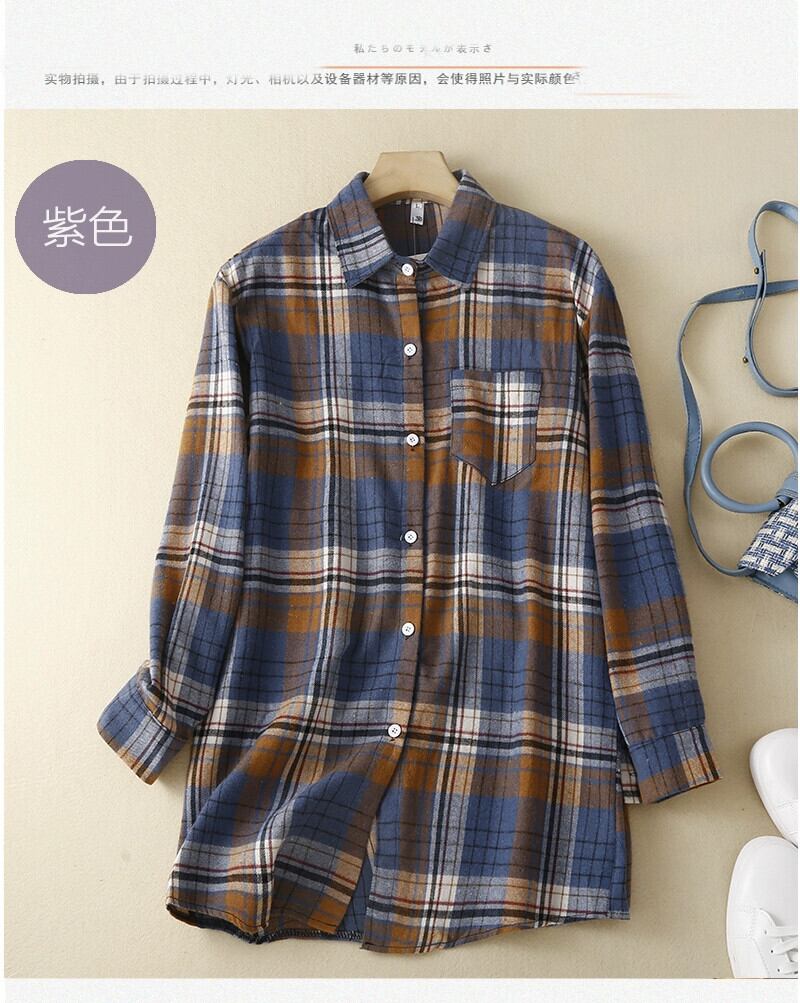 ese オリジナル eign trade ブランドレトロ起毛チェック柄長袖シャツ女性秋ルーズカジュアルミッドレングストップ ロング オータム 秋物 sine23489617367