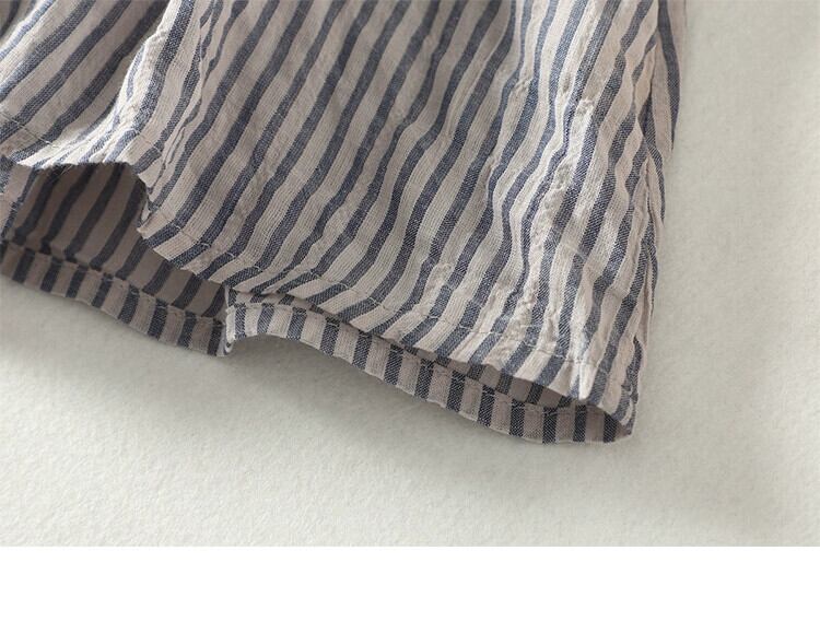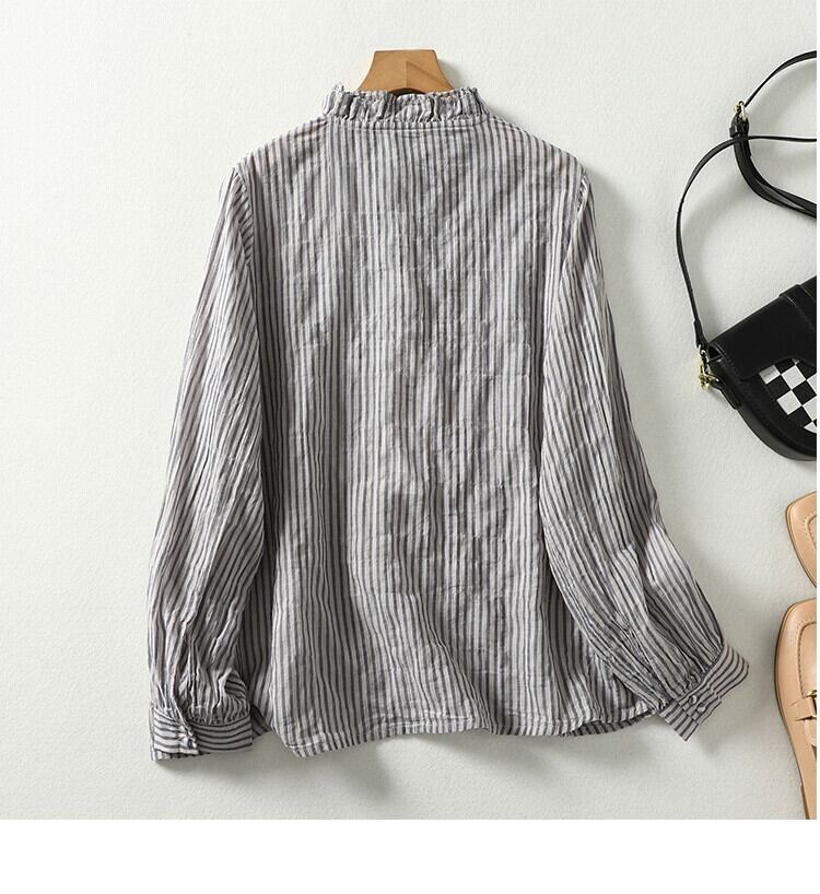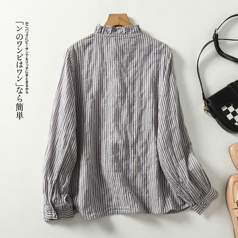 ese オリジナル eign trade ブランドレトロ綿とリネンの縦縞シャツ女性のルーズカジュアル真菌エッジ襟リネントップ コットン ストライプ sine80252826151