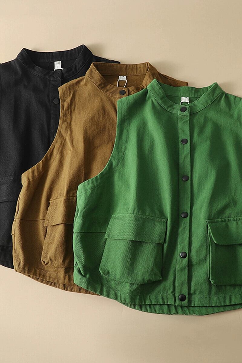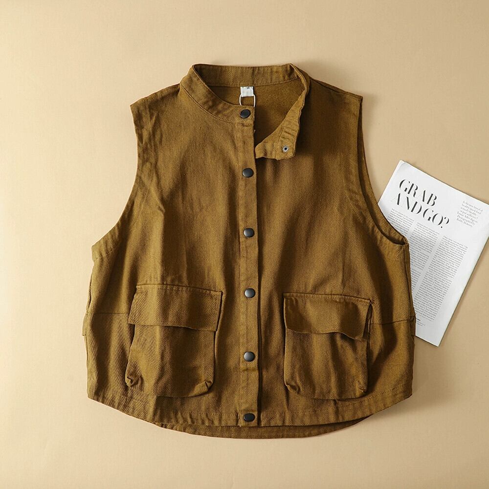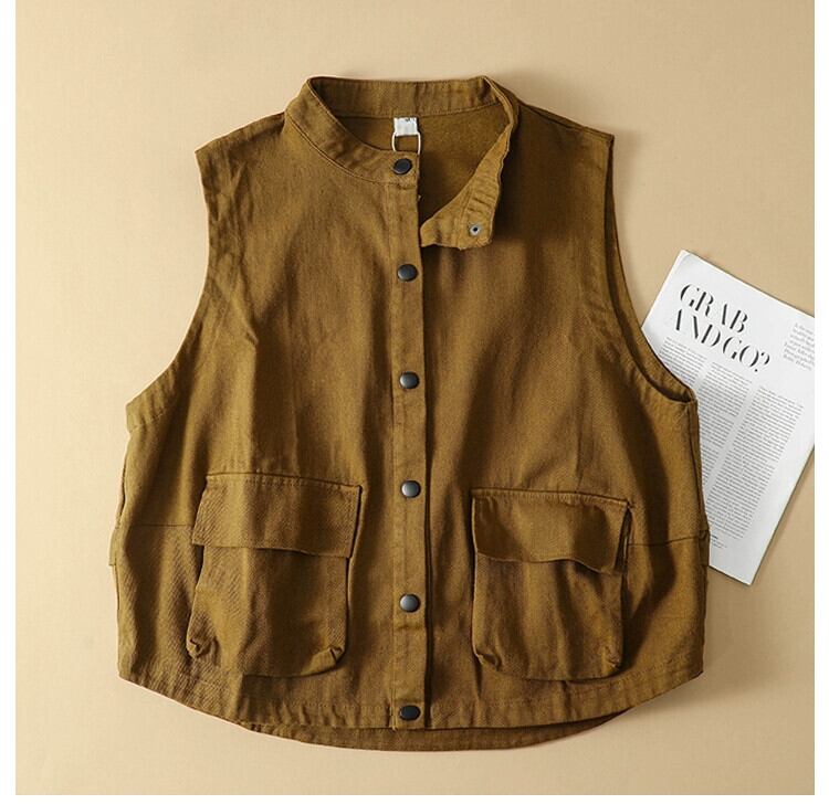 eign trade 割引ブランドテールグッズ ese レトロワークベストジャケット女性のルーズデザインスタンドアップカラーチョッキトップ sine25248415868