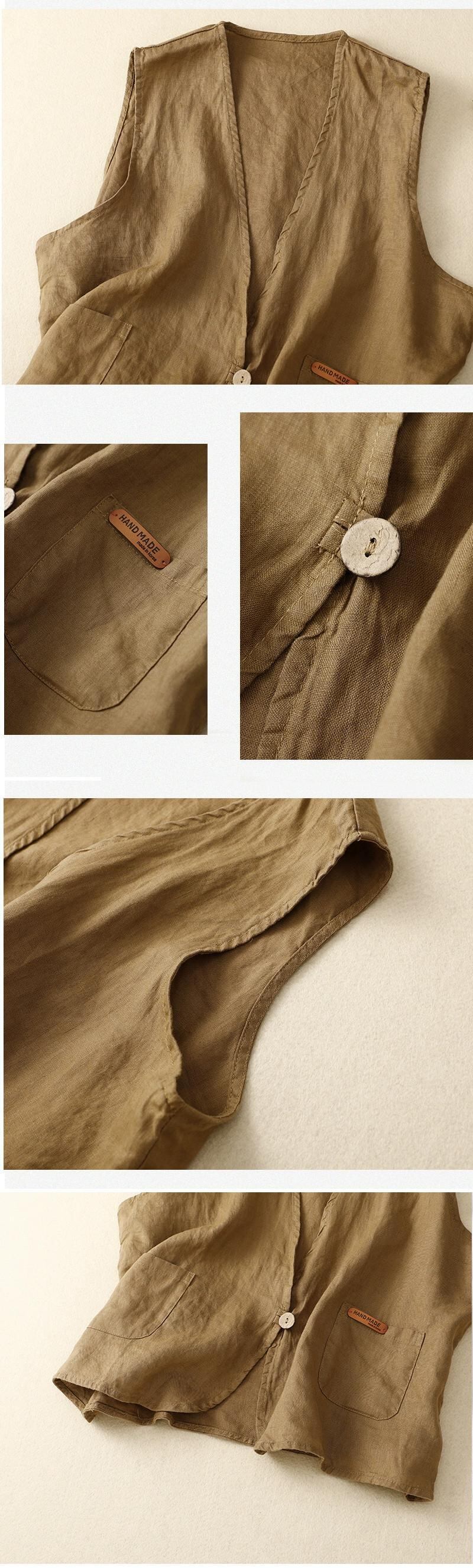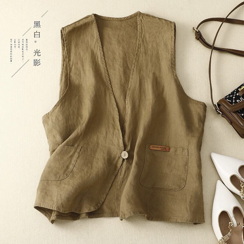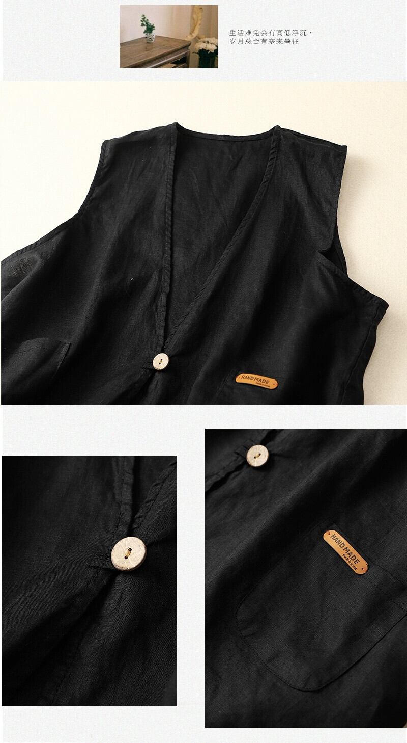 ese オリジナル eign trade ブランド綿とリネン V ネック 1 ボタンベストジャケット女性のルーズリネンベストベストトップ コットン Vネック sine55255513105