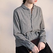 クリアランス漏れ〜有名な既製の文学的なチェック柄の長袖シャツの女性、ゆったりとしたカジュアルな二層の綿糸のトップスに対抗します ロング コットン sine15967332851