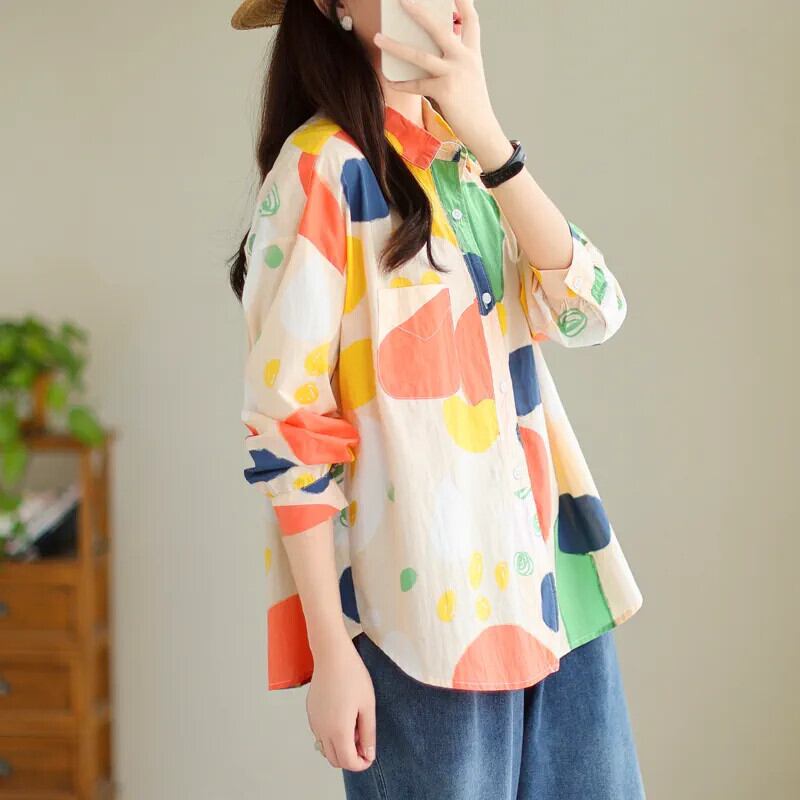 eign trade ese オリジナルハイエンドブランドカラーマッチングプリント長袖シャツ女性の年齢を軽減する多用途の緩い気質トップ秋 ロング オータム 秋物 sine71361738775