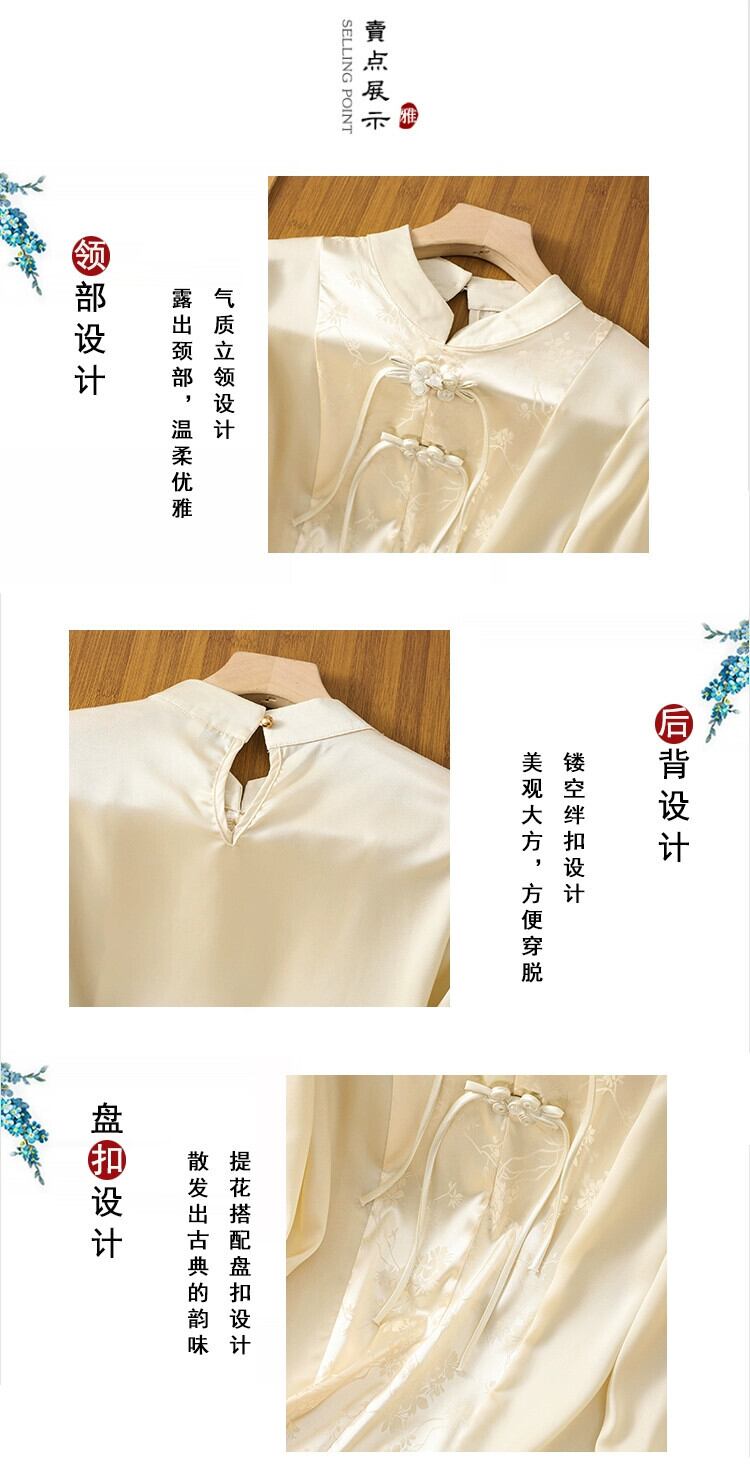 モールビッグネーム撤退最終在庫中国風ディスクボタンジャカードシャツ女性のレトロジャカードサテン長袖トップ ロング sine53109632646