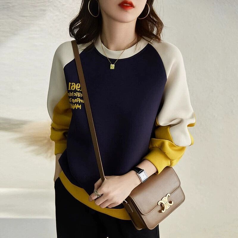 ディスカウントストアショッピングモール撤退コントラストカラーステッチラウンドネックトレーナーレディースルーズカジュアルレタープリントトップ秋と冬 オータム 秋物 ウィンター 冬物 Oネック sine13545488650