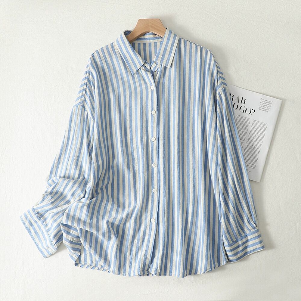 Eign Trade Counter ブランドテールグッズバージョン縦縞長袖シャツ女性秋ルーズカジュアル気質ラペルトップ ロング オータム 秋物 ストライプ sine37602217401