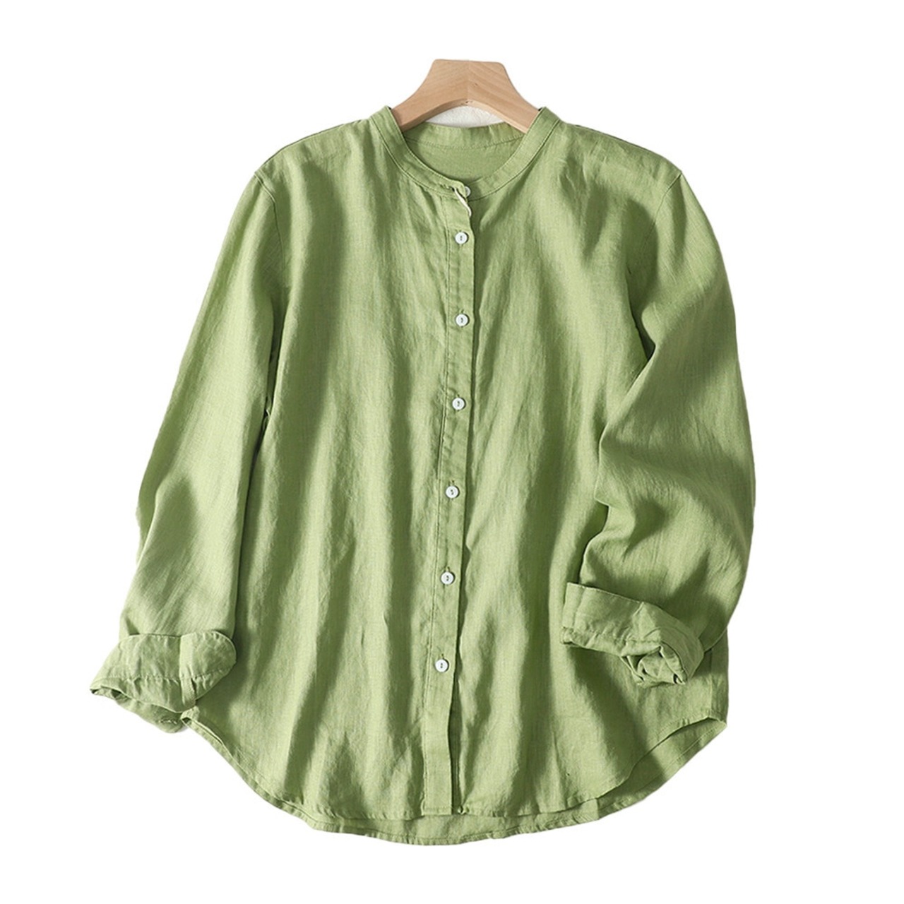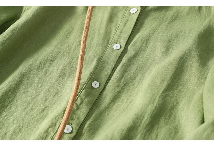 モールビッグネーム撤退最終在庫綿とリネン長袖ベビードールトップスレディースルーズカジュアルリネンスタンドアップカラーシャツ ロング コットン sine42527047224