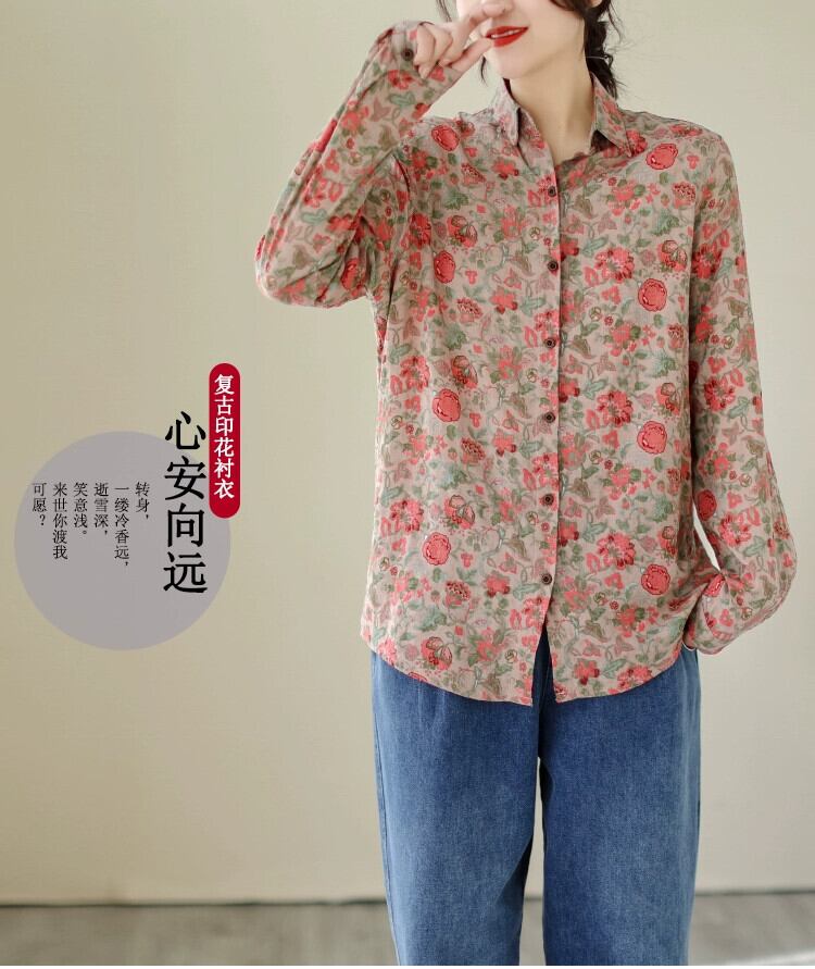 第一線のブランドの貿易撤退、文学的なレトロな花柄の女性用シャツ、ファッショナブルなゆったりとしたシングルブレストのトップス sine54580823421