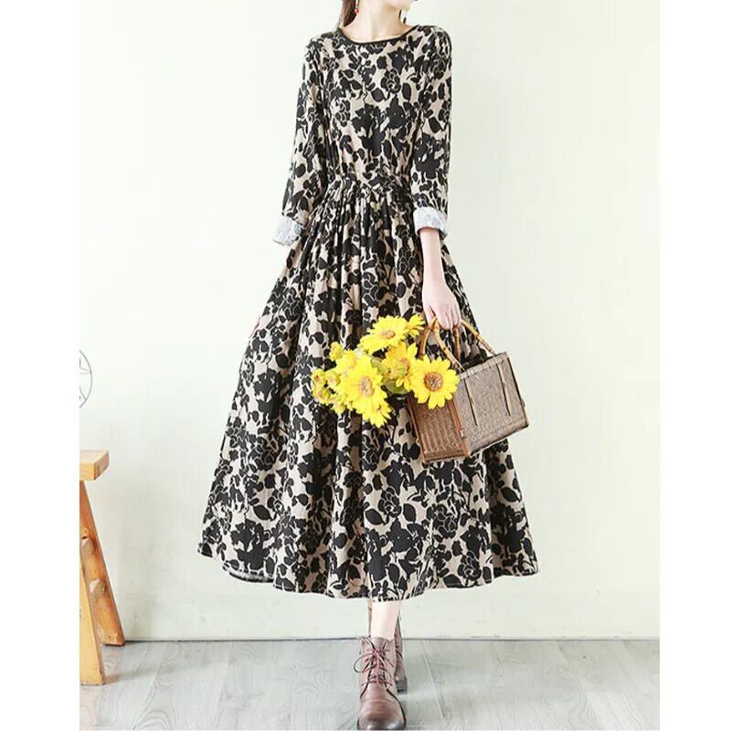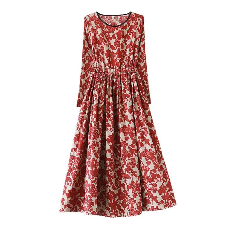 モールビッグネーム撤退最終在庫レトロプリント綿とリネンのドレス女性のハイウエストスリムリネンロングスカート ハイウェスト コットン sine87632822914