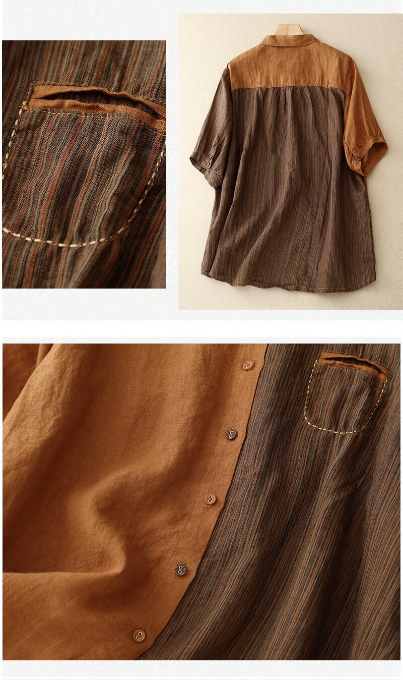 ese オリジナル eign trade ブランドレトロコットンとリネン半袖シャツ女性のルーズニッチデザインリネンシャツトップ sine66774563567