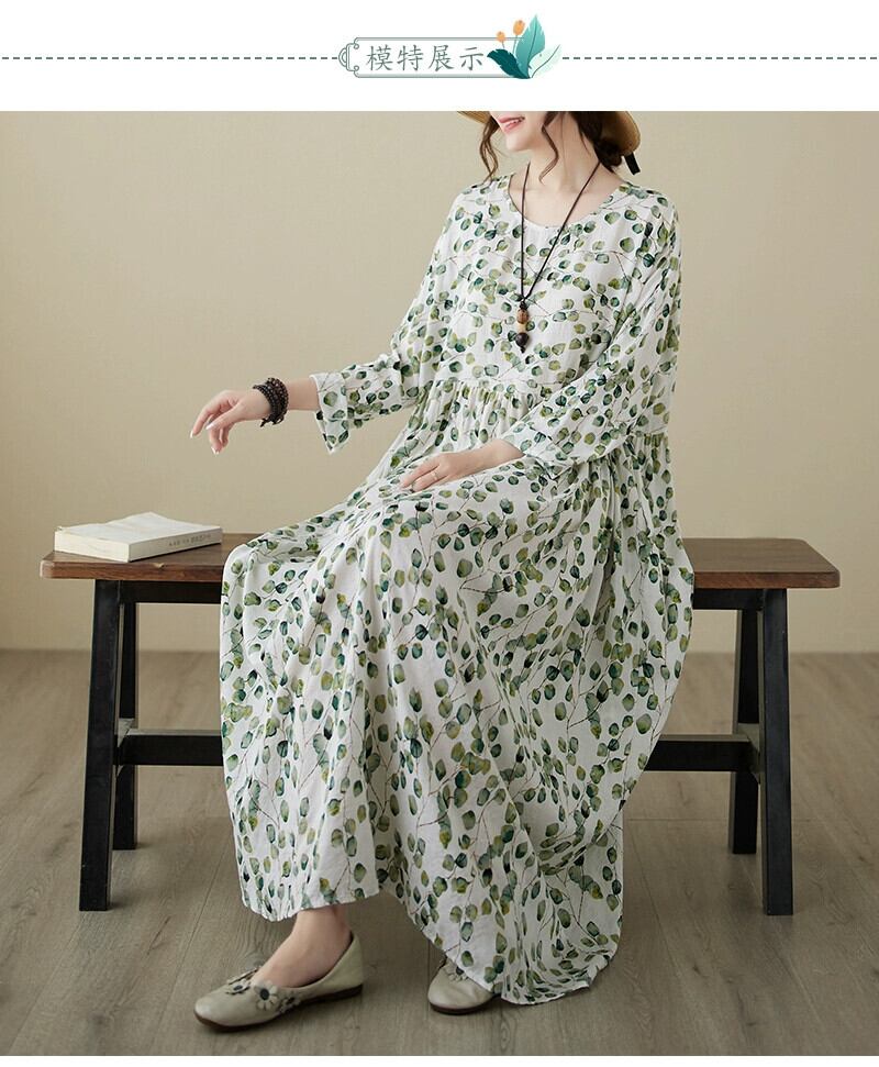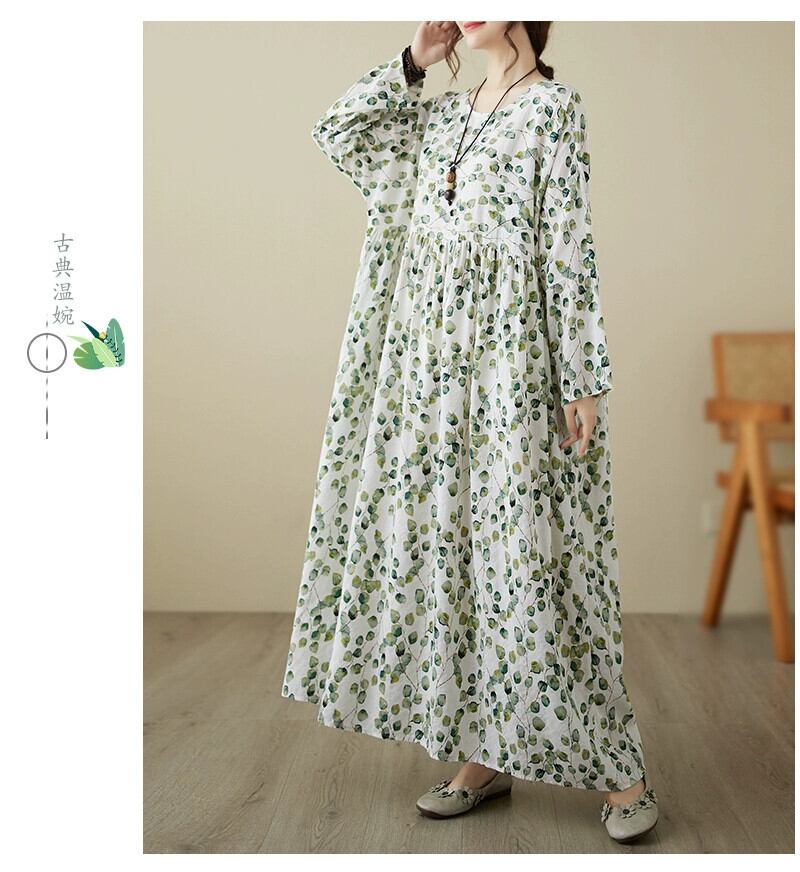 クリアランスクリアランスカウンター牛用品撤去文学芸術綿麻長袖ドレスレディースゆったり大きいサイズリネン花柄ロングスカート コットン 大きめサイズ sine47703220334
