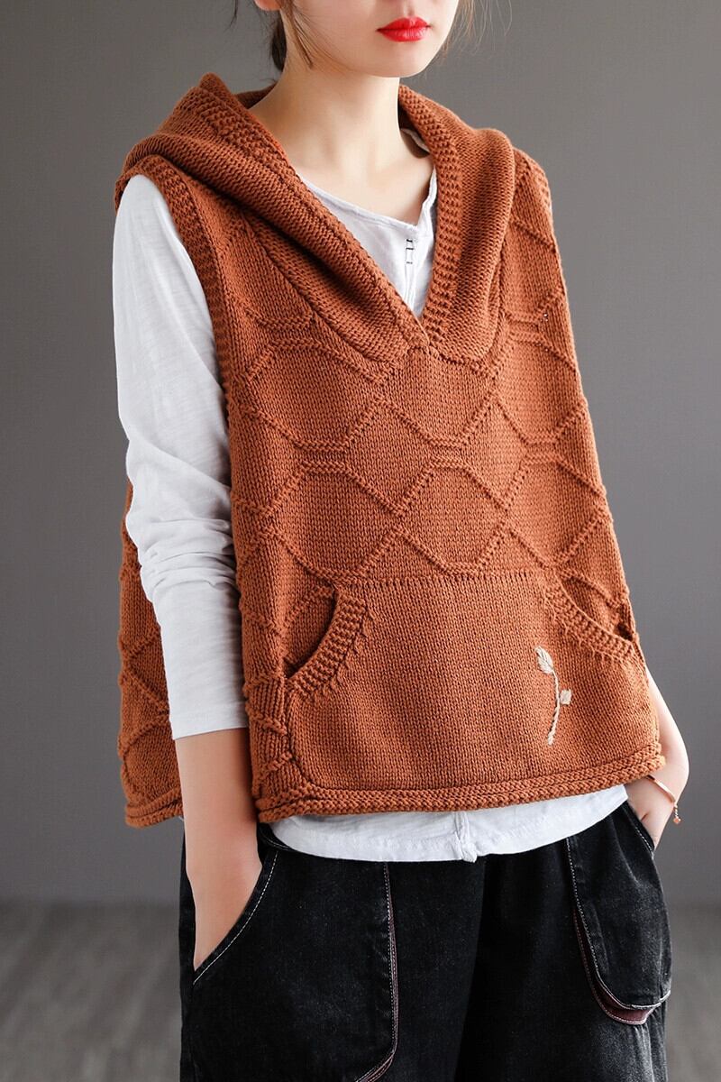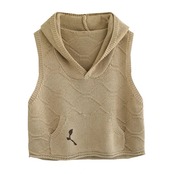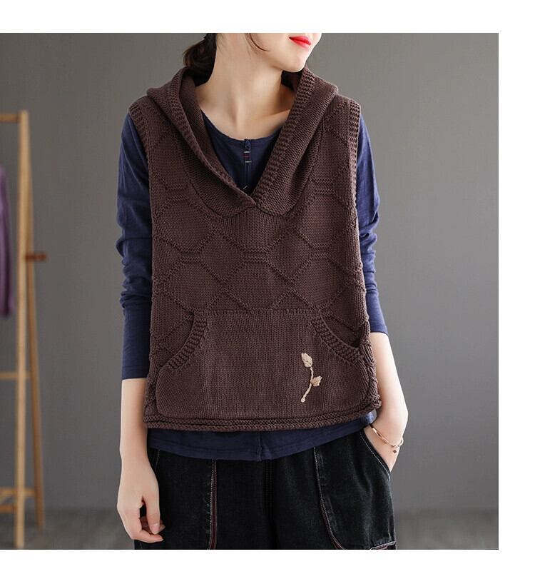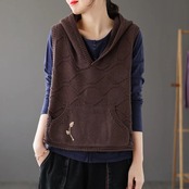 ディスカウントストアモール撤退レトロノースリーブニットフード付きトップ女性ルーズアウターチョッキベスト sine42123525942