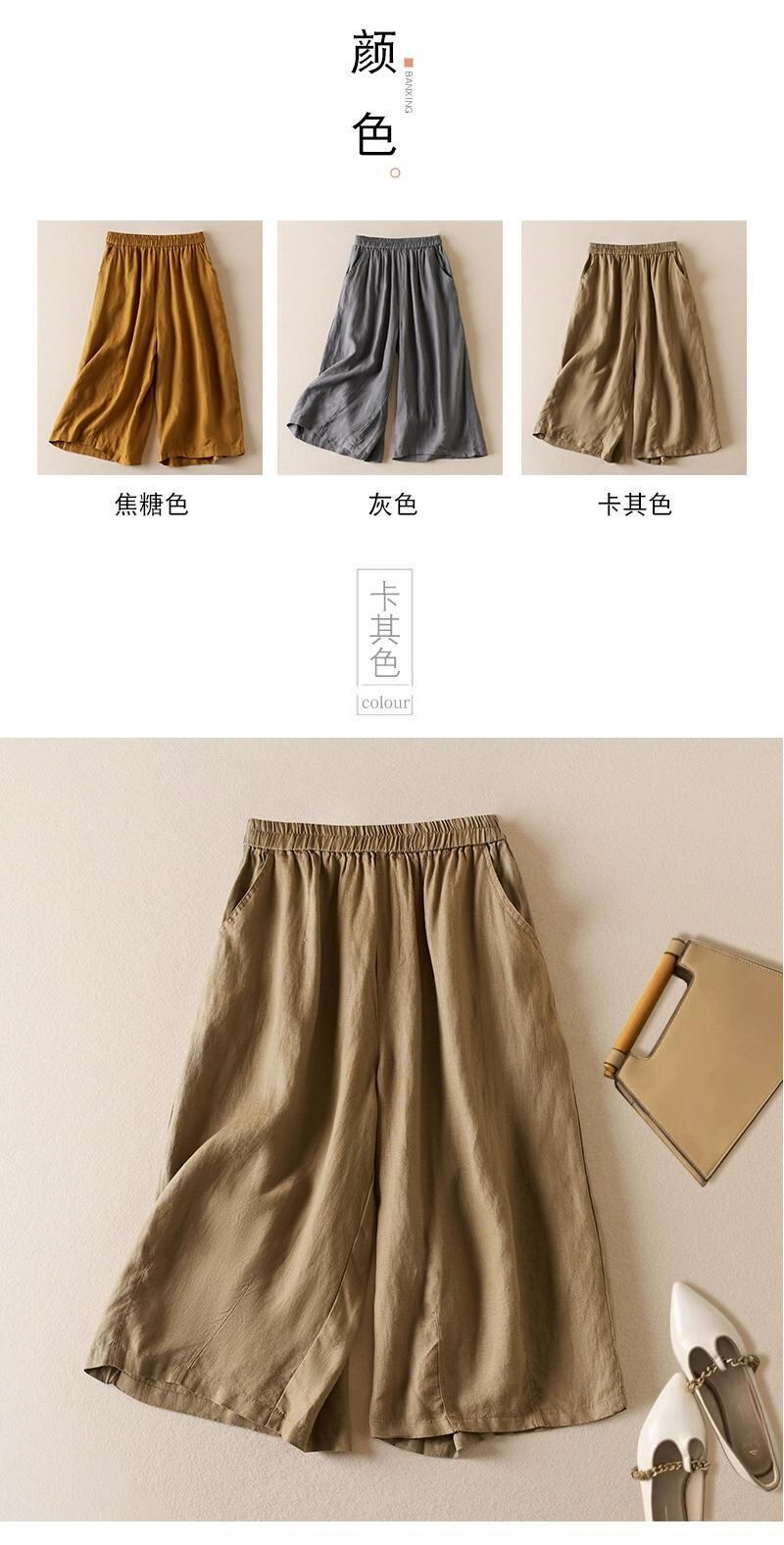 クリアランスカウンター最後の在庫レトロリネンワイドレッグパンツレディース伸縮性ウエストとドレープコットンとリネンのカジュアルクロップドパンツ エラスティック sine84147245832