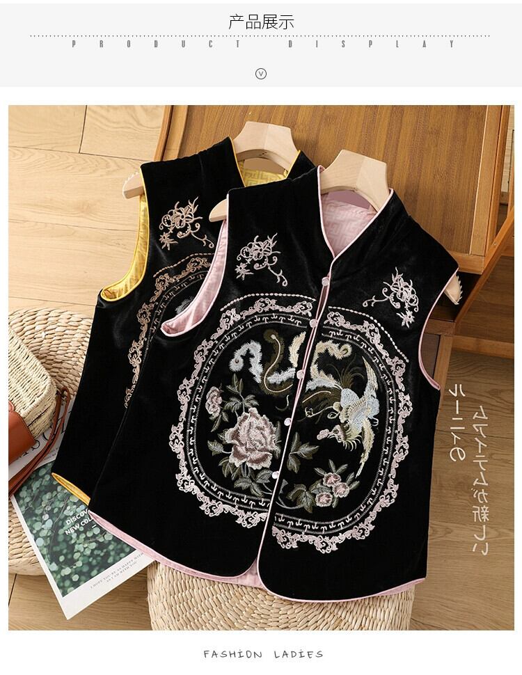 クリアランスカウンター引き出し最終在庫レトロ中国風重工業刺繍 V ネックチョッキベストジャケット女性 Vネック sine73148735177