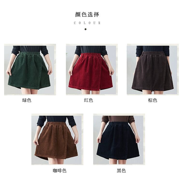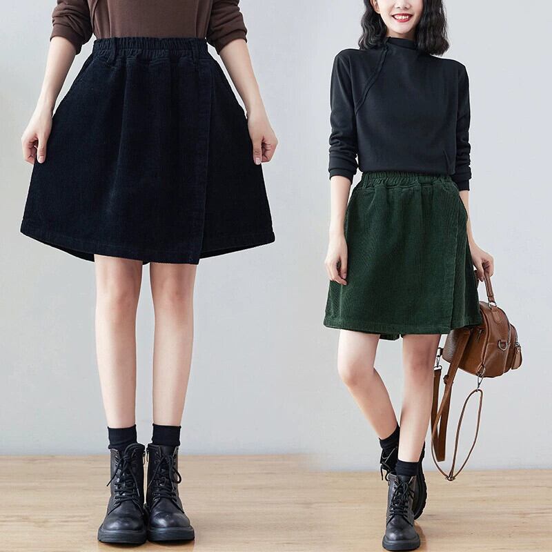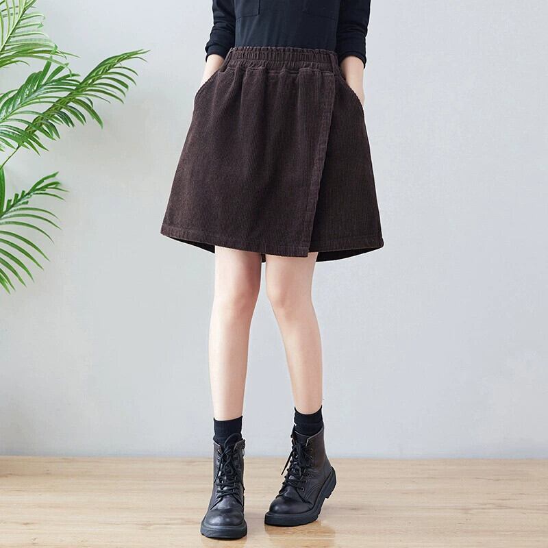 コーデュロイワイドレッグショートパンツスカート女性の秋と冬の緩い大きいサイズレトロコーデュロイスプライシングフェイクツーピースアウターカジュアルブーツパンツ 大きめサイズ オータム 秋物 ウィンター 冬物 ショーツ ブルマー sine51928691301