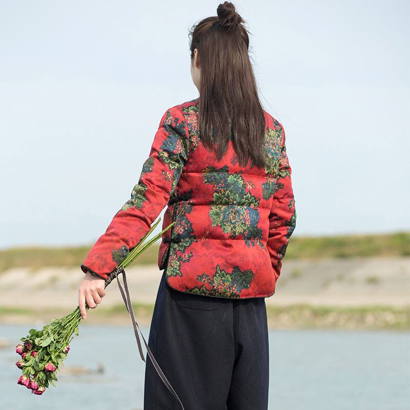 クリアランスブランドカウンターエンド商品女性のエスニックスタイル改善唐スーツ暖かい綿ジャケットレトロプリントスタンドカラーパッド入りジャケット コットン sine42530216312