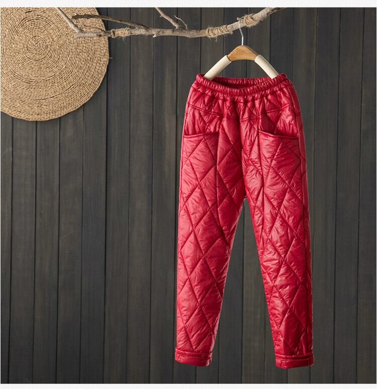 ダウン綿パンツアウターウェア女性の秋と冬の大きいサイズルーズ菱形厚く軽くて暖かいストレートハイウエストキルティングハーレムパンツ コットン 大きめサイズ オータム 秋物 ウィンター 冬物 sine70505654166