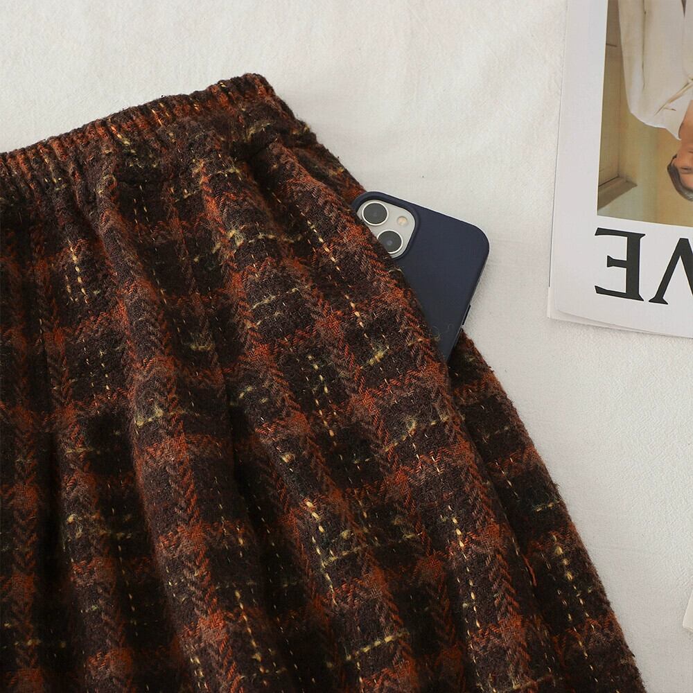 ese オリジナル eign trade ブランドレトロチェック柄ウールスカート女性のルーズハイウエストスリムウール A ラインスカート Aライン sine33659935542