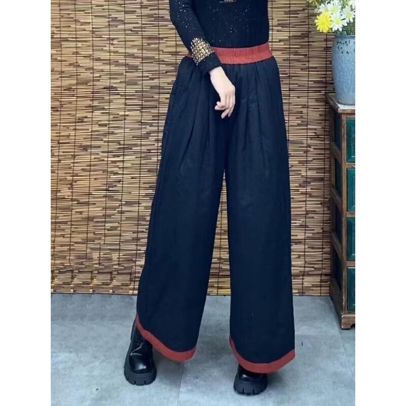 クリアランスブランド牛肉カウンターテール商品レトロ対照的な色の綿ワイドレッグパンツ女性ルーズハイウエスト肥厚暖かい綿パンツ コットン sine70566772491
