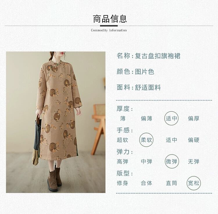 クリアランス漏れ〜カウンター最後の在庫の女性の中国風改良プリントチャイナドレスレトロプラスベルベットと厚みのあるコットンとリネンのドレス sine74334020532