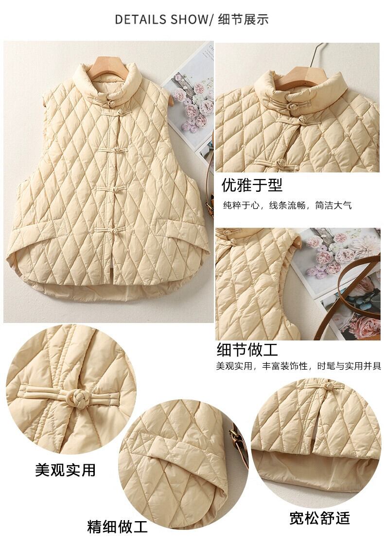 ディスカウント ストア、ショッピング モール、中国風ディスク ボタン スタンド カラー ベスト、綿入りジャケット、女性用キルティング増厚暖かい綿ジャケット コットン sine9415872548