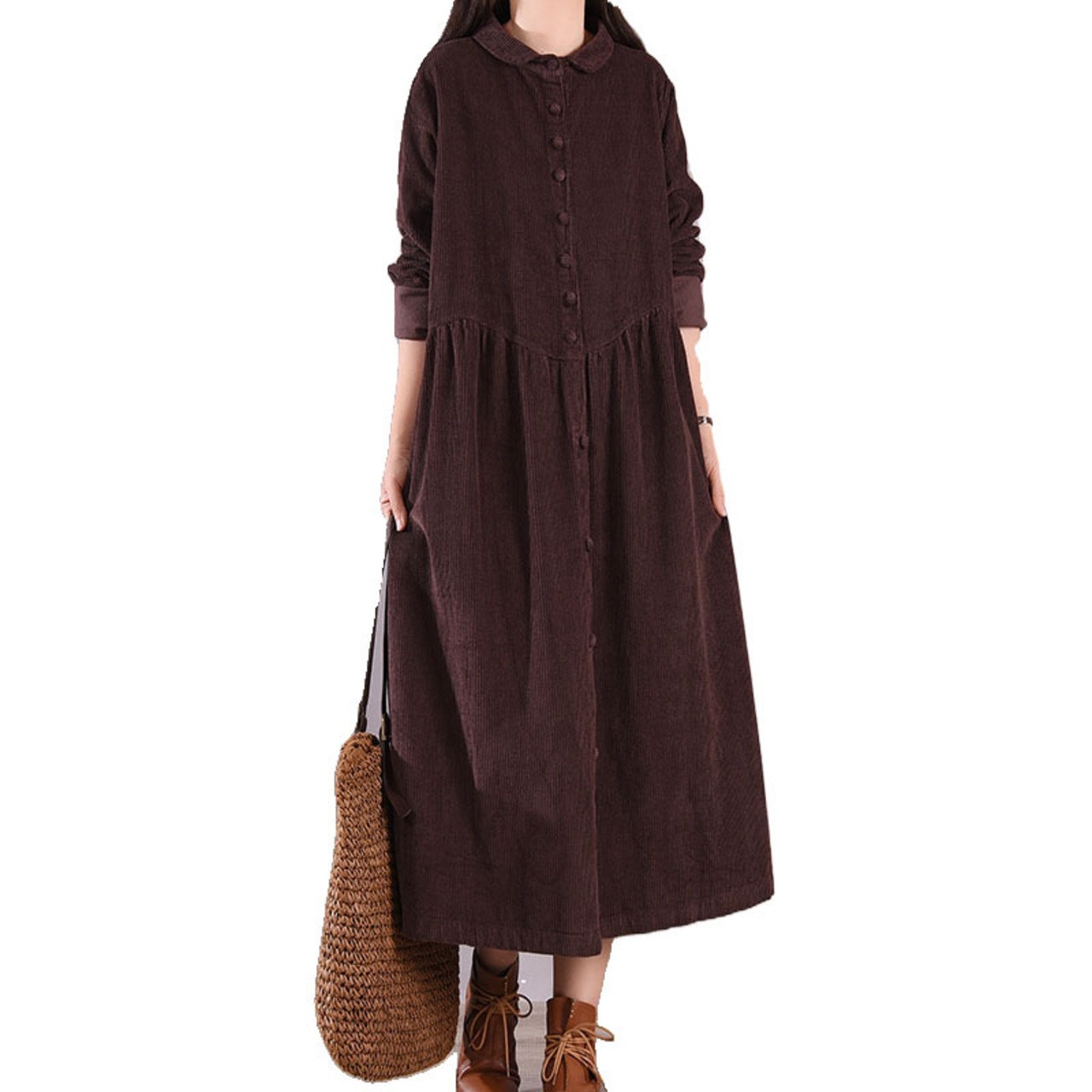クリアランスリーク〜eseオリジナルヴィンテージコーデュロイ長袖ドレス、ルーズプラスベルベット、厚みのあるコーデュロイシャツスカート ロング ビンテージ sine15969287884