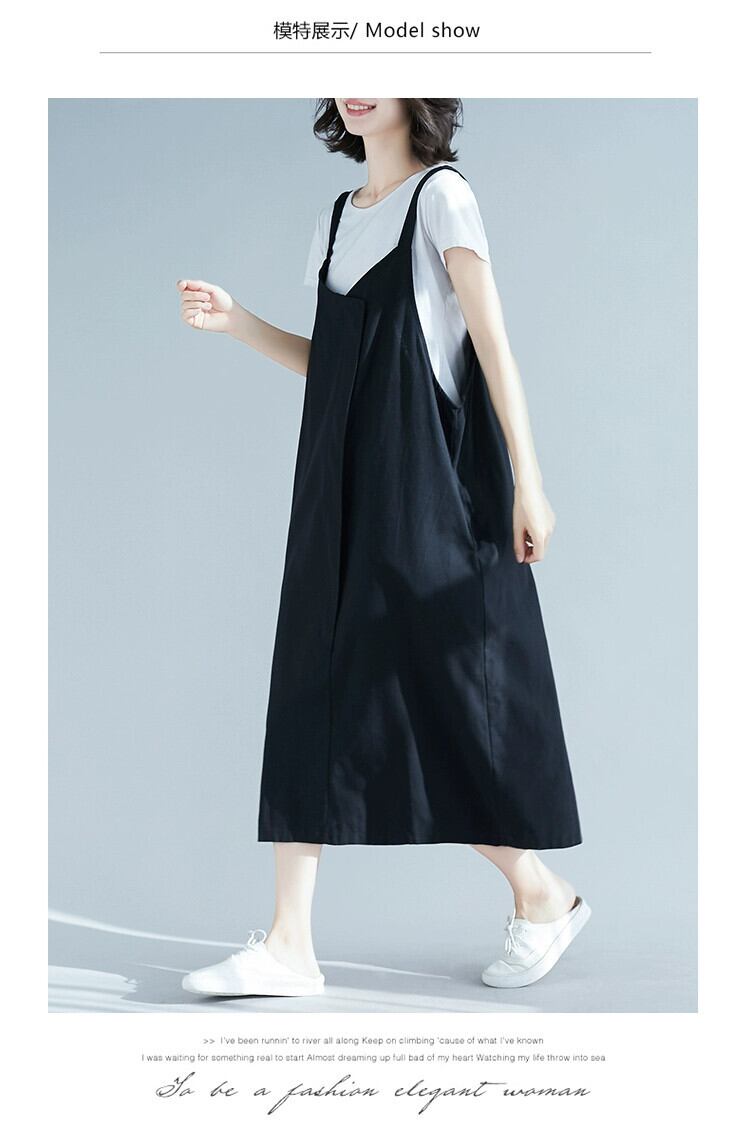 コットンとリネンのサスペンダードレスの女性の春と夏の 2021 新しい緩い大きいサイズのスタイルカジュアルミッドレングスノースリーブサスペンダースカート 大きめサイズ スプリング 春物 サマー 夏物 sine37219767028
