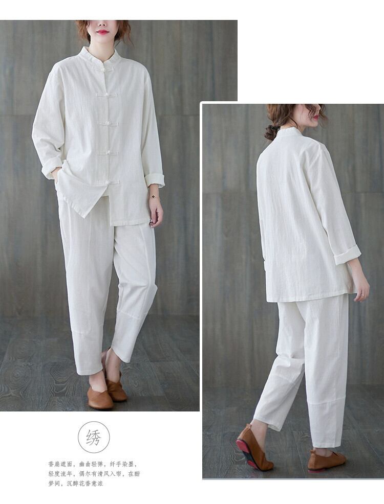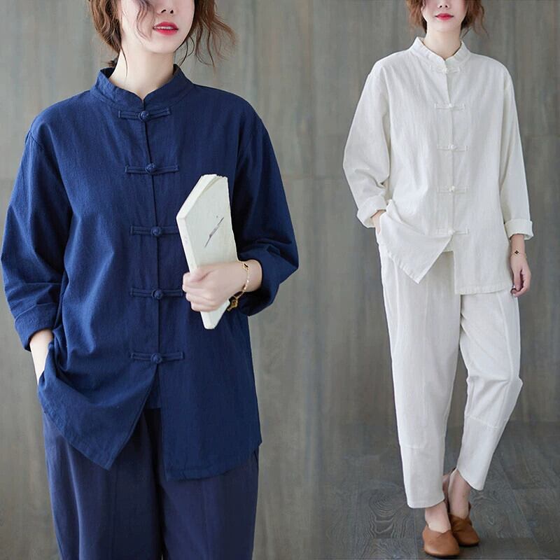 大きいサイズの女性の綿とリネンのシャツジャケット春 2021 秋ルーズスタンドカラープレートボタン中国風隠し肉カジュアルカーディガントップ コットン 大きめサイズ スプリング 春物 オータム 秋物 sine43588349639