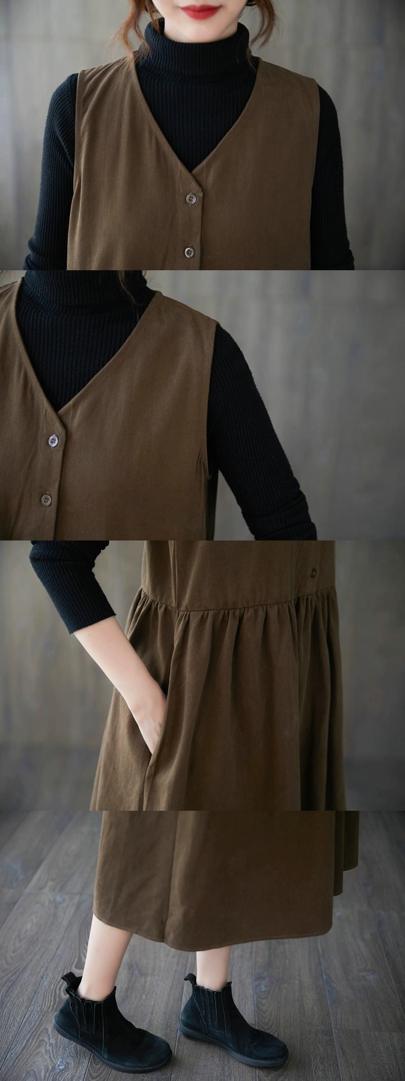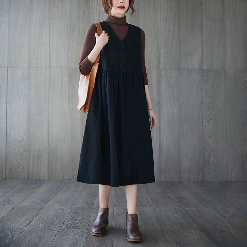 ベストドレス女性 2021 秋と冬ルーズ大きいサイズスプライシング腹カバー V ネック痩身アウターサスペンダーミッドレングススカート 大きめサイズ オータム 秋物 ウィンター 冬物 Vネック sine85983169733