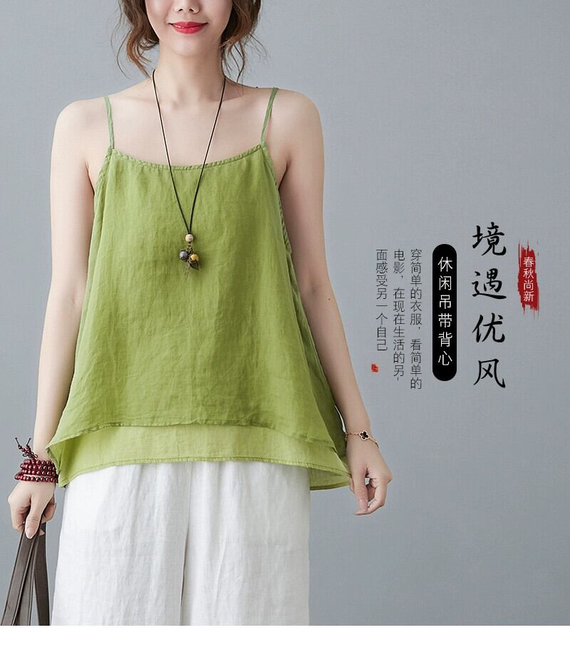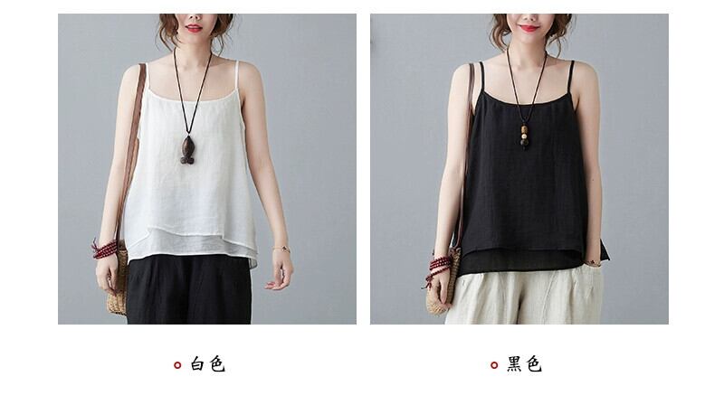 綿とリネンのベスト女性夏文学ルーズ無地インナーウェア薄型スリムカジュアルフェイクツーピースサスペンダー Tシャツトップ コットン サマー 夏物 ソリッドカラー sine59387646433