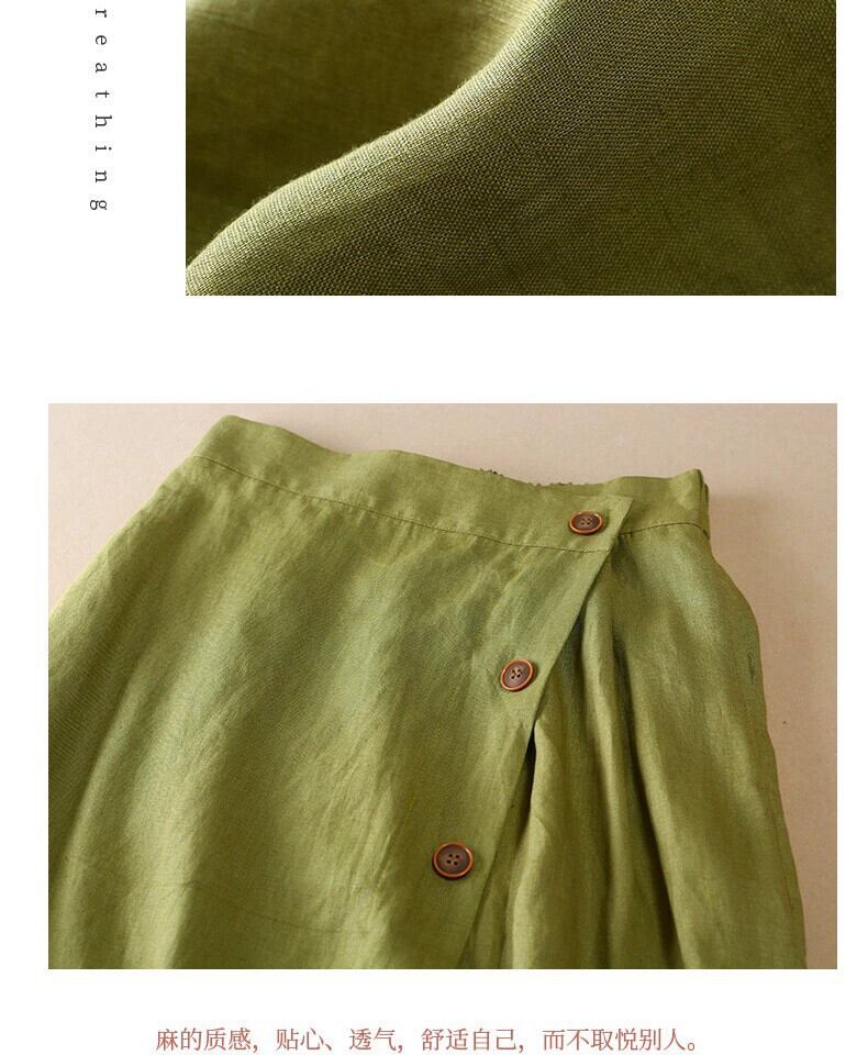 綿とリネンのスカートの女性の夏 2021 新しい緩い大きいサイズハイウエストレトロ無地ミッドレングスリネン a ラインスカートと大きな裾 ハイウェスト コットン 大きめサイズ サマー 夏物 Aライン ソリッドカラー sine86882765001