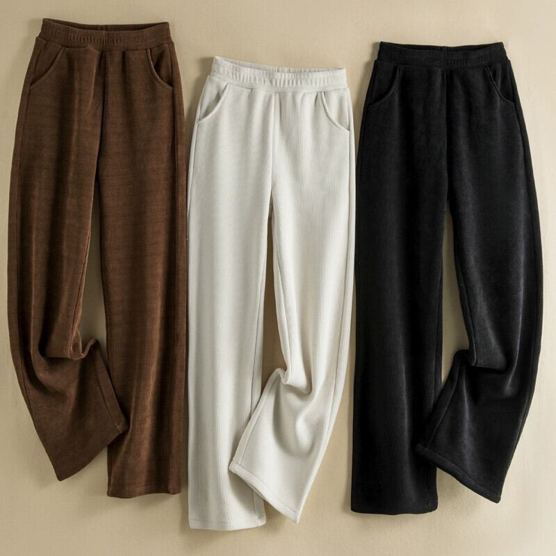 eseオリジナルのsingle eign tradeの有名なレディースレトロコーデュロイワイドレッグパンツ、ルーズストレートハイウエストプラスベルベット厚みのあるロングパンツ sine61820677358