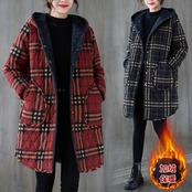 冬のキルティング厚みのある綿のコートの女性、ゆったりとした大きいサイズの太さmmプラスベルベットの暖かいポケットレトロなチェック柄のミドル丈コート コットン 大きめサイズ ウィンター 冬物 sine84617839898