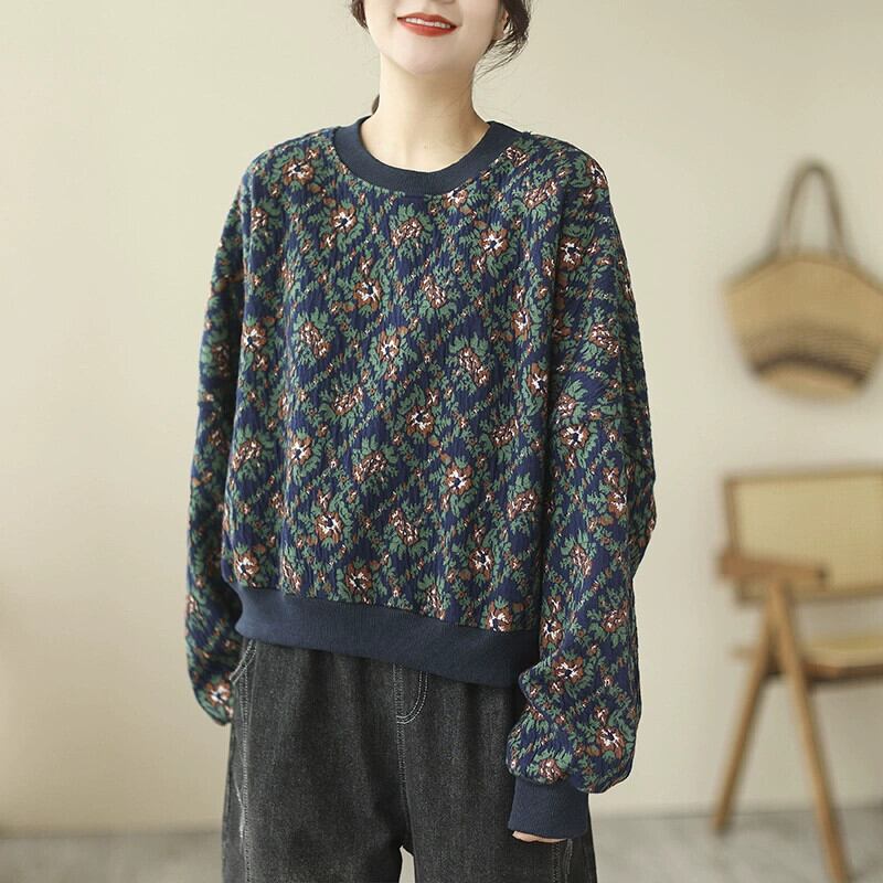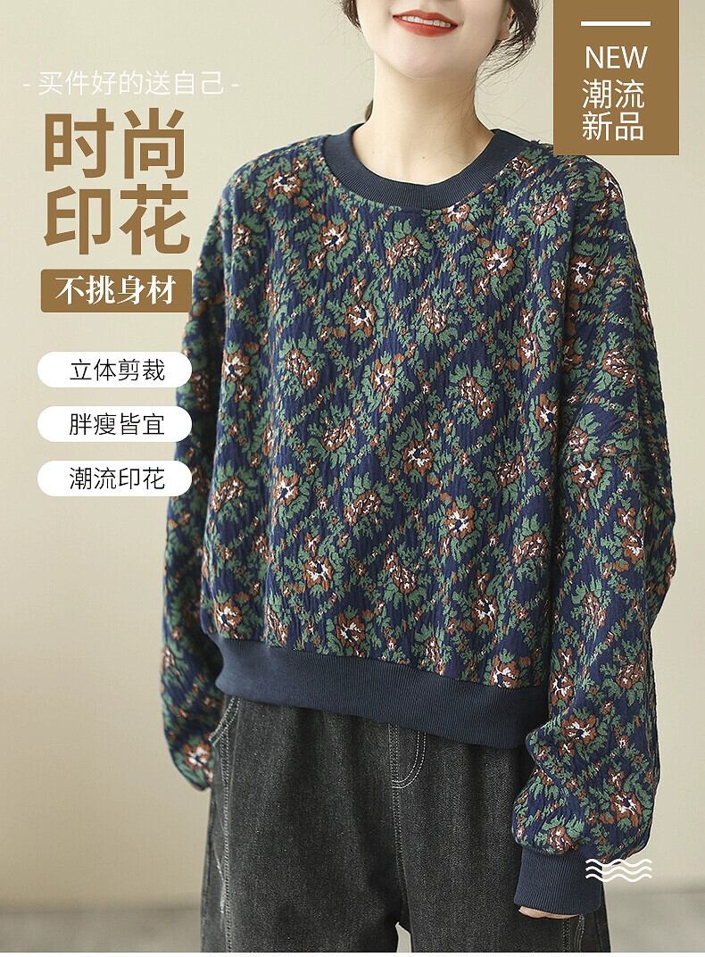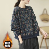 ビッグブランドテールグッズのクリアランスカウンター除去レディースベルベット肥厚長袖スウェットシャツルーズレトロプリントセータートップ ロング sine11226575344