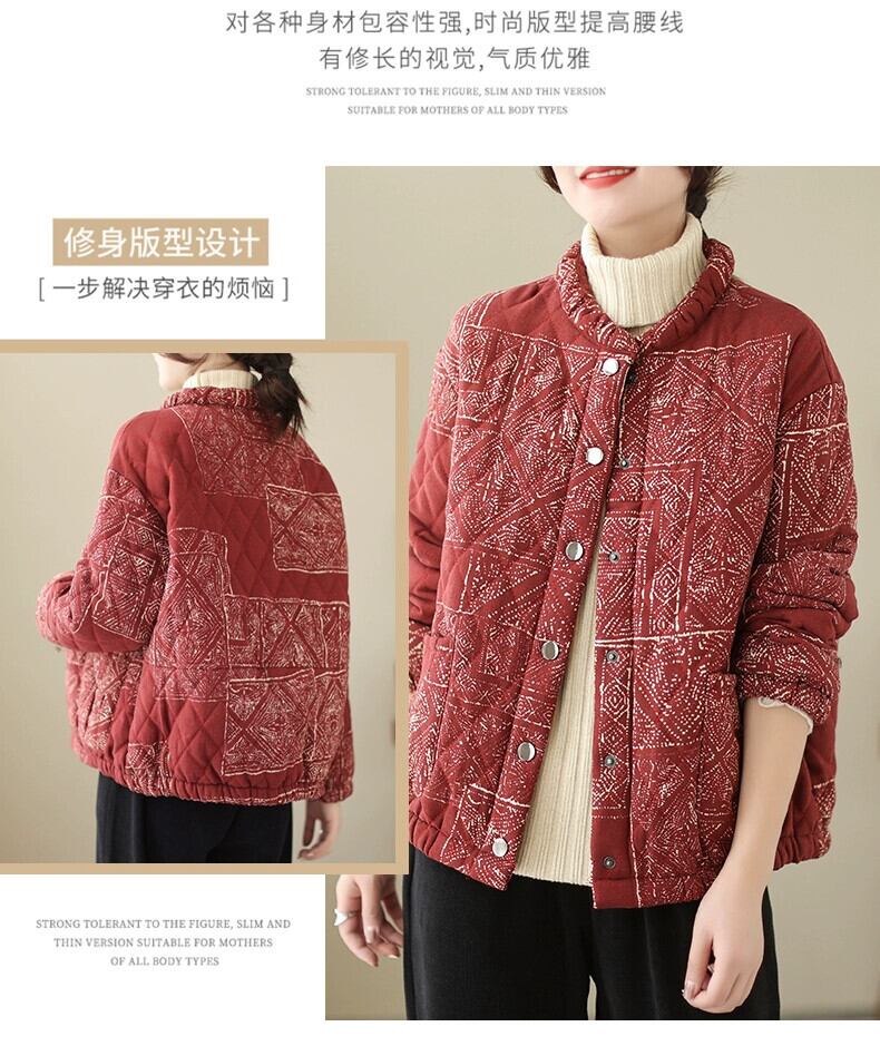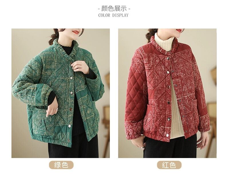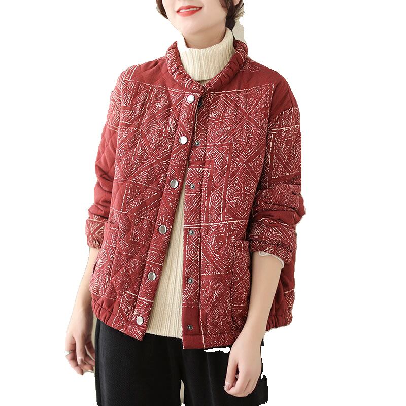 ディスカウント ストア ショッピング モールの女性のレトロなキルティング プリント小さな綿のジャケット冬緩い肥厚暖かい綿のコート コットン ウィンター 冬物 sine2682489965
