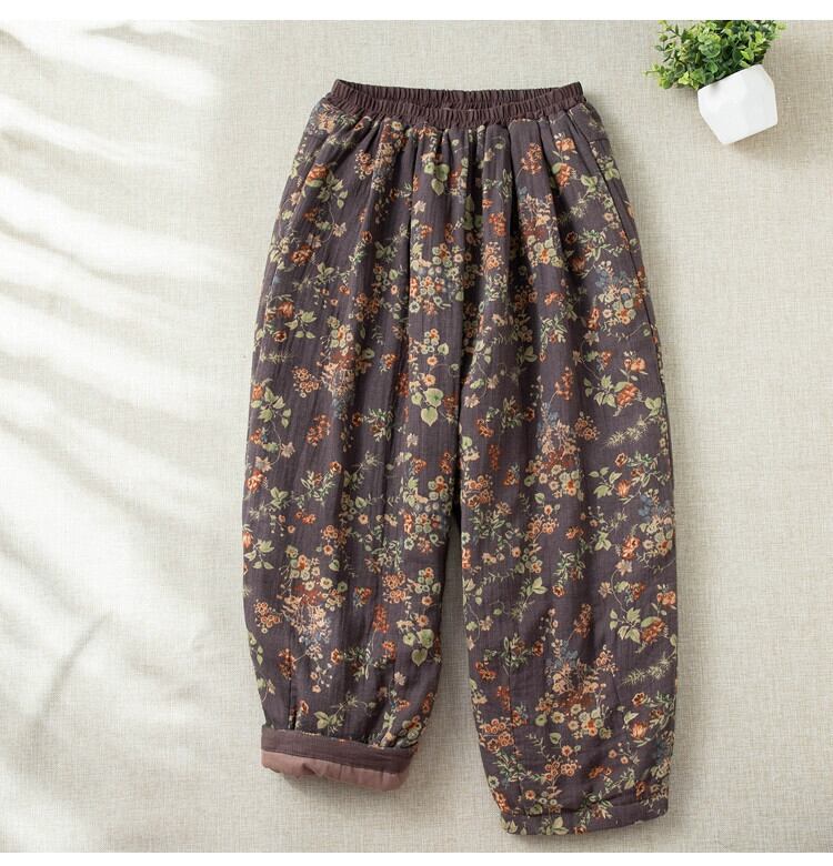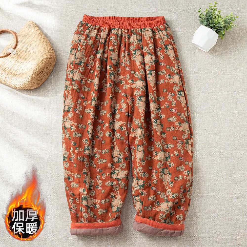 ショッピングモールクリアランスブランド婦人服アウター暖かいリネンブルマレトロ肥厚キルティングライトフローラルコットンパンツ レトロ ショーツ ブルマー 花柄 sine66626030285