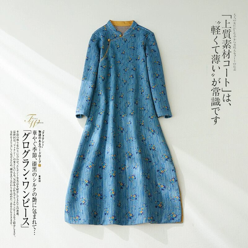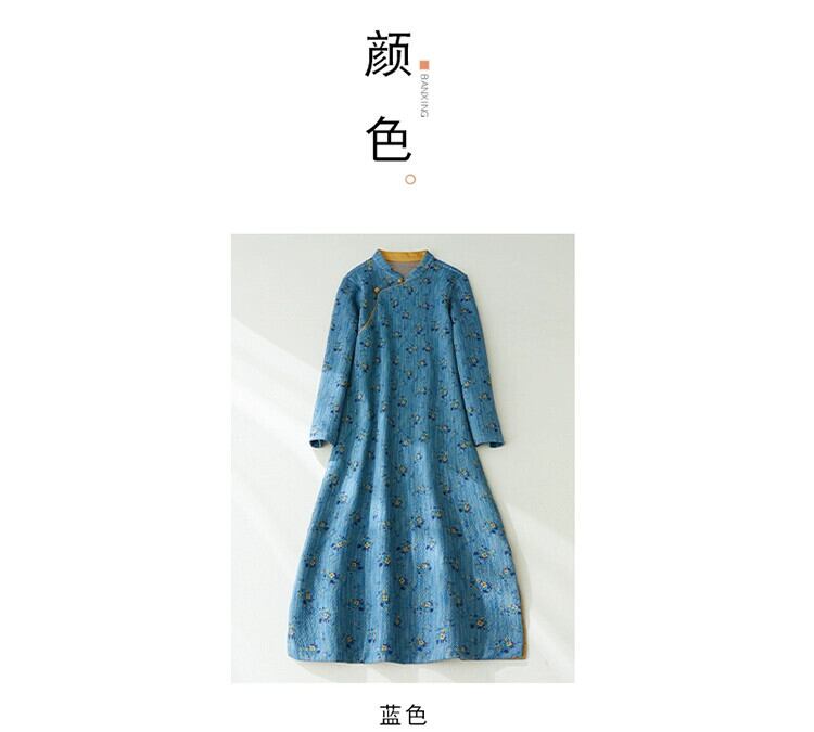 クリアランスカウンターストア最後の在庫の女性のレトロな花柄ディスクバックルチャイナドレスプラスベルベット肥厚長袖ドレス ロング sine28595297873