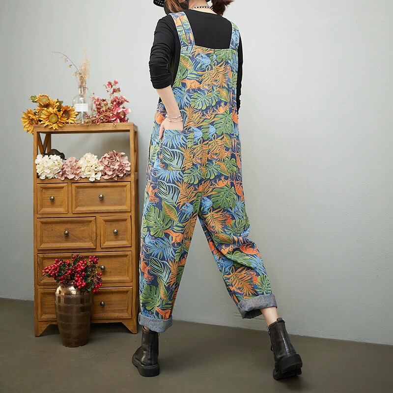eign trade イタリアブランド撤退最終在庫レディースレトロプリントデニムハーレムパンツルーズでスリムなオーバーオールジャンプスーツ sine13004645651