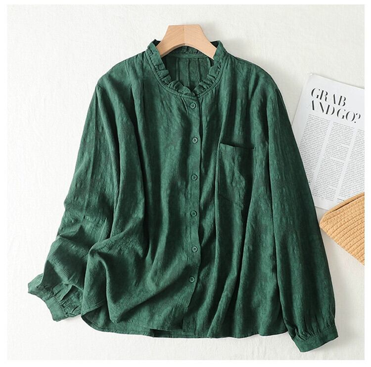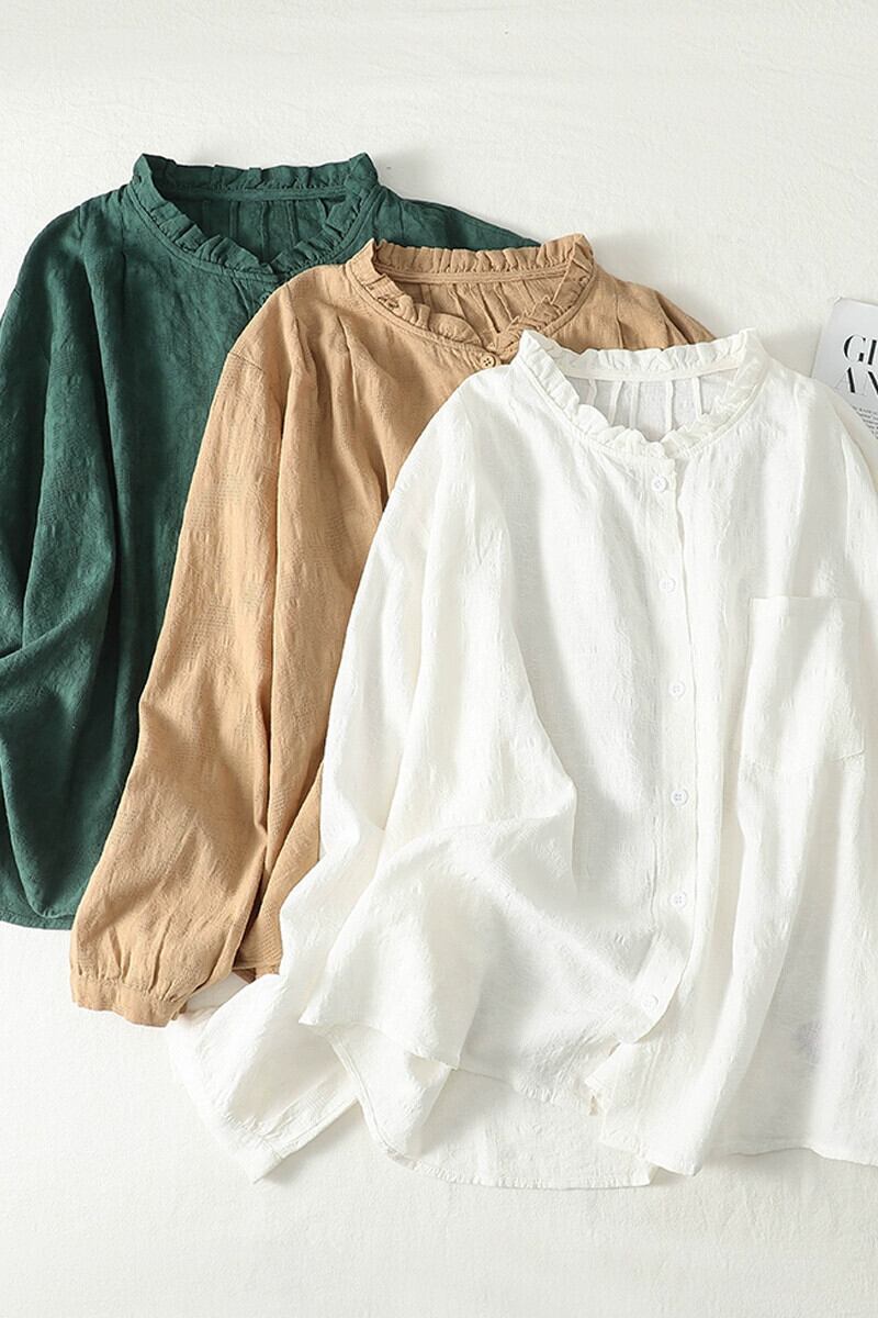 クリアランスリーク〜eseオリジナルヴィンテージコットンとリネン長袖シャツレディースルーズカジュアル菌レースリネントップ ロング ビンテージ sine64595020379