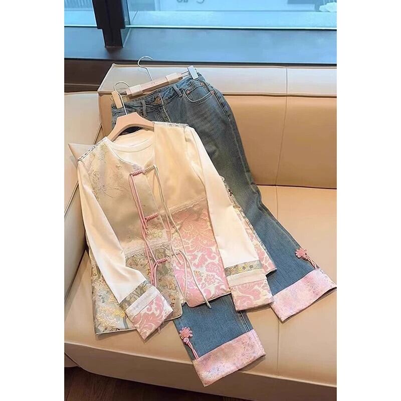 中国風の国民風のファッションスーツの女性の秋と冬の新しい重工業ジャカードディスクバックルベストトップシャツツーピースセット オータム 秋物 ウィンター 冬物 sine46657969638