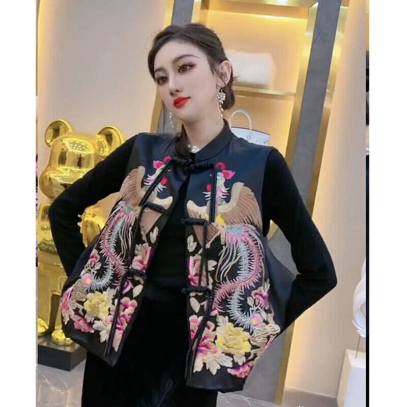 モールビッグネーム撤退最終在庫新中国風国民風重工業刺繍ディスクボタンスタンドカラーベストベストジャケット女性 sine683007364