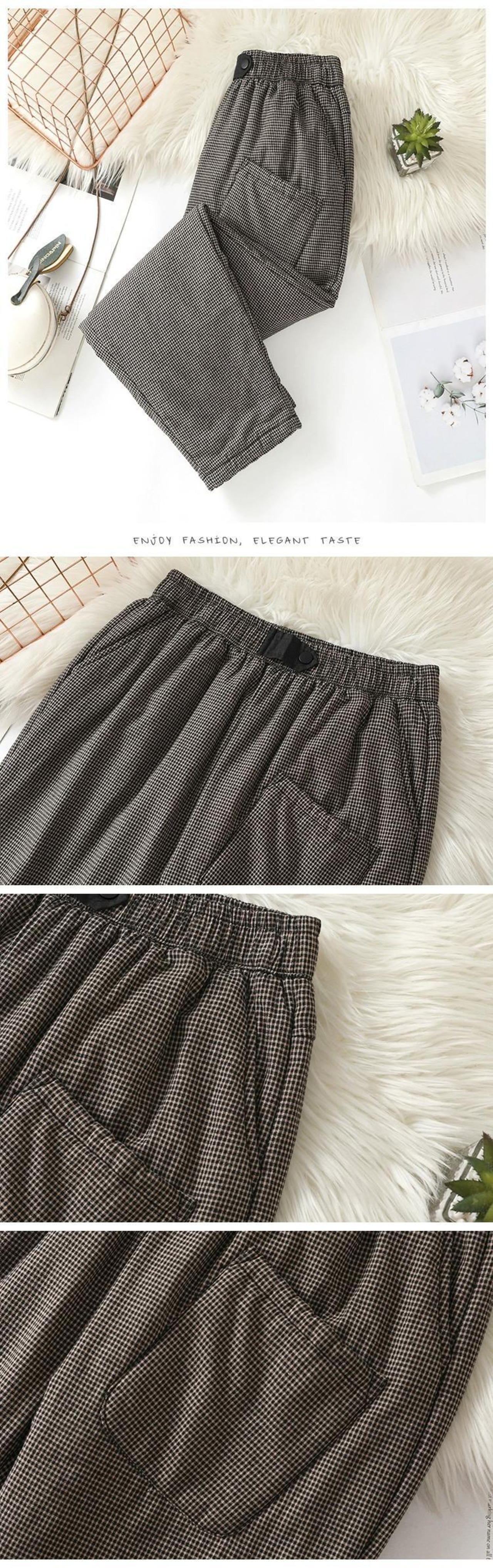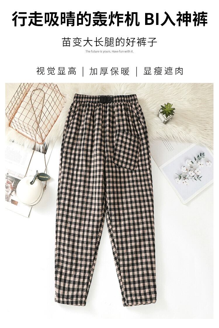 ビッグブランドテール商品のクリアランスカウンター除去キルティングチェック柄ハーレムパンツ女性の秋と冬の弾性ウエスト肥厚暖かいカジュアルパンツ エラスティック 伸縮 オータム 秋物 ウィンター 冬物 sine6266835644