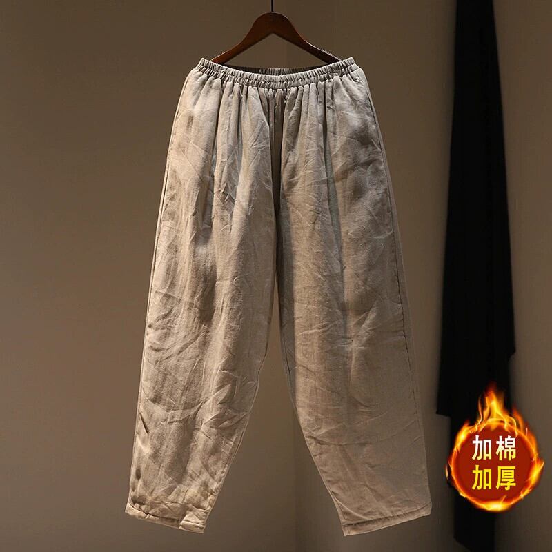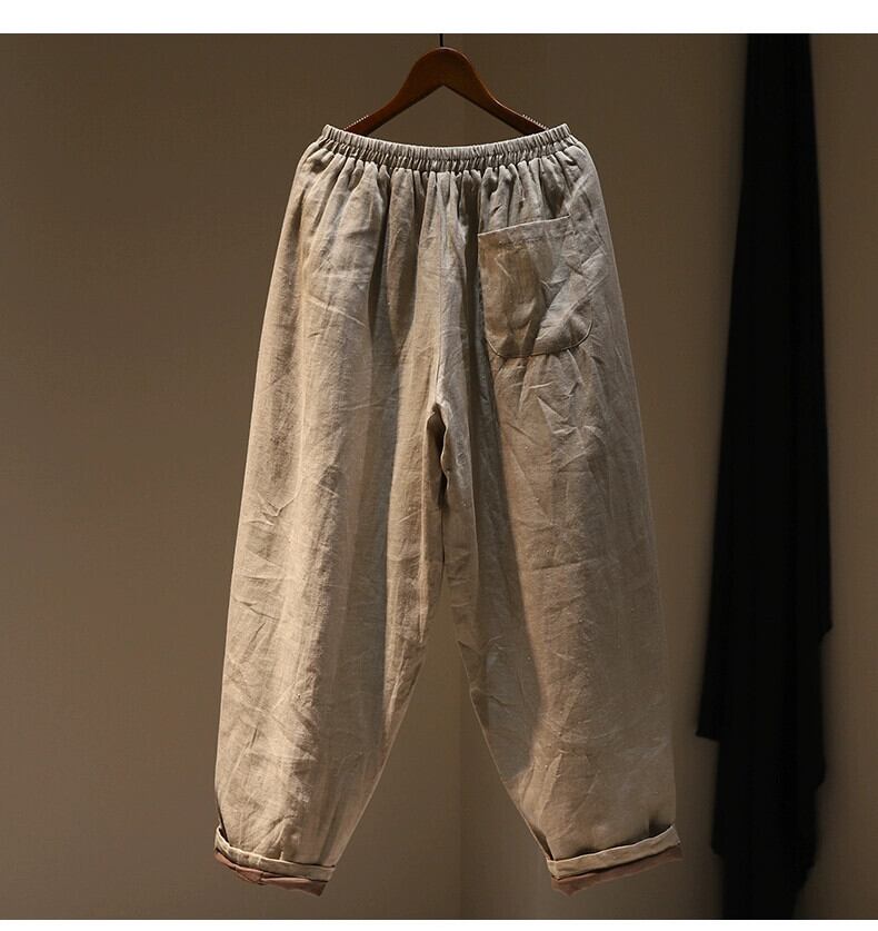 eign trade 割引ブランドテールグッズレトロリネンキルティングハーレムパンツ女性の弾性ウエストカジュアル肥厚綿とリネンブルマ コットン エラスティック 伸縮 ショーツ ブルマー sine82023896029