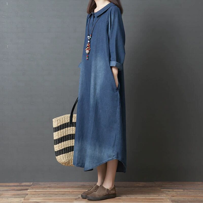 デニムドレスの女性 2020 秋と冬の新緩い大きいサイズの脂肪ミリメートルスリム長袖スタイルのミッドレングスシャツドレス ロング 大きめサイズ オータム 秋物 ウィンター 冬物 sine47876452025